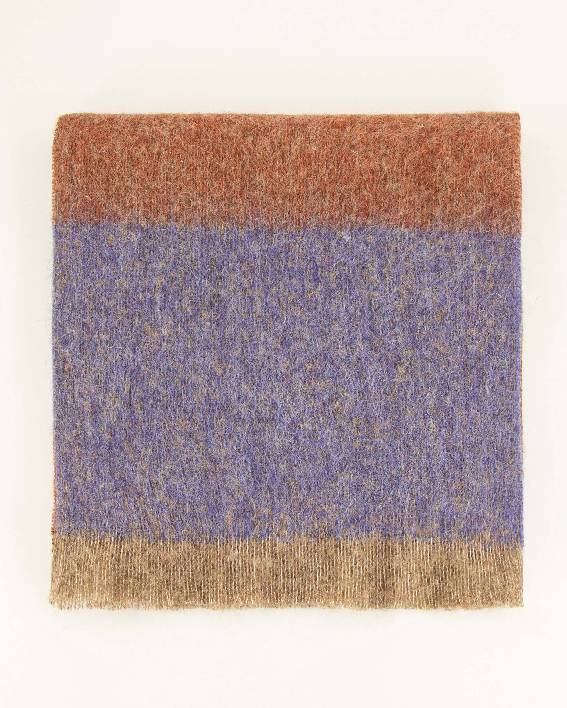 Bufanda con motivo de rayas anchas fantasía, tejida en Francia.