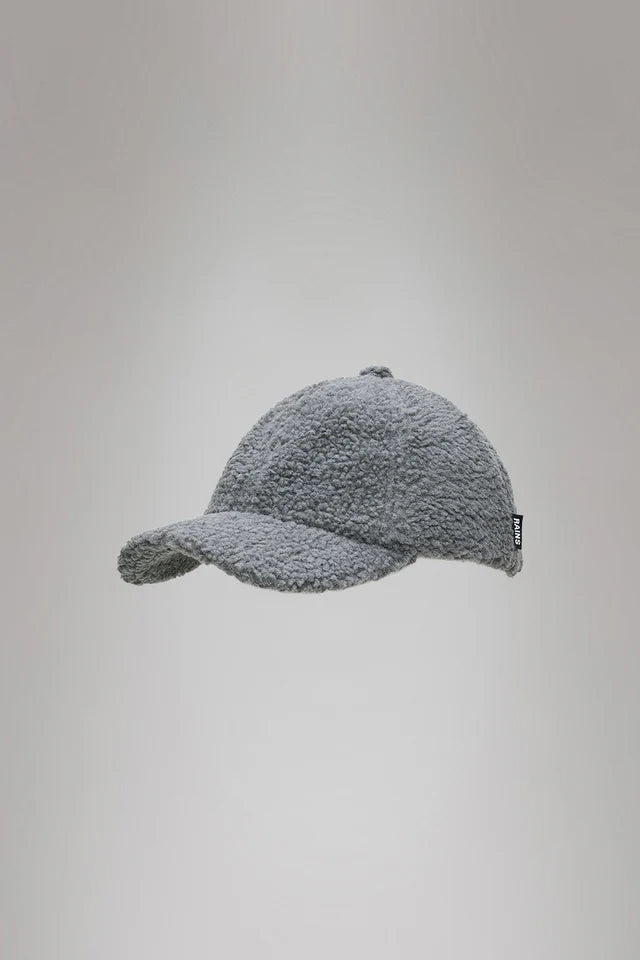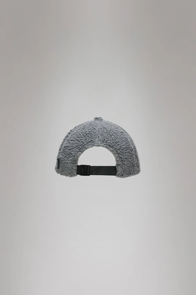 Fleece Cap es una versión renovada de la clásica gorra de Rains. Diseño estructurado en seis paneles, típico de las gorras de béisbol, con visera curva. La gorra se ajusta mediante una tira tipo cincha en la parte trasera y una hebilla.