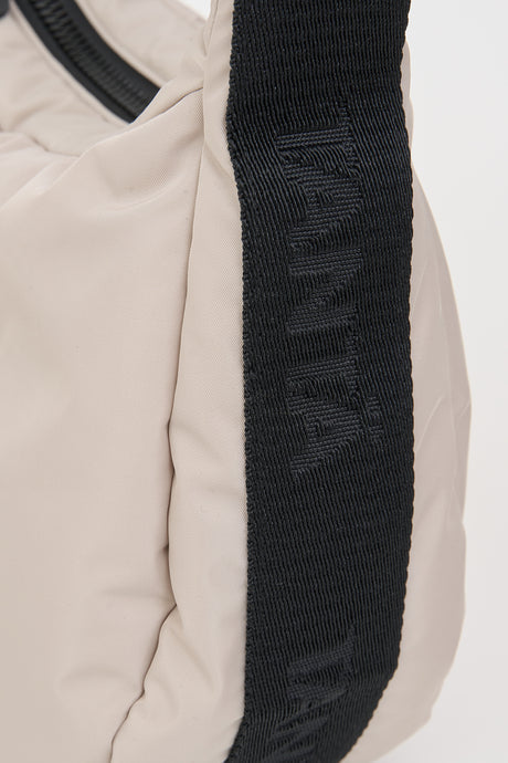 Fabricado con su tejido memory brillante y repelente al agua, es perfecto para llevar lo fundamental del día a día. Terminado con una cremallera de resina y una correa ajustable con logo en jacquard, combina funcionalidad y moda.
