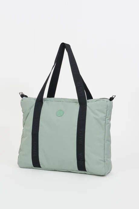 Los bolsos acolchados son un básico de TANTÄ. Fabricado con tejido memory brillante y repelente al agua, ofrece un amplio espacio para llevar cómodamente tus accesorios de trabajo, ropa de gimnasio y más. Terminado con una cremallera de resina y equipado con correas de jacquard con el logo, combina practicidad con un look moderno.