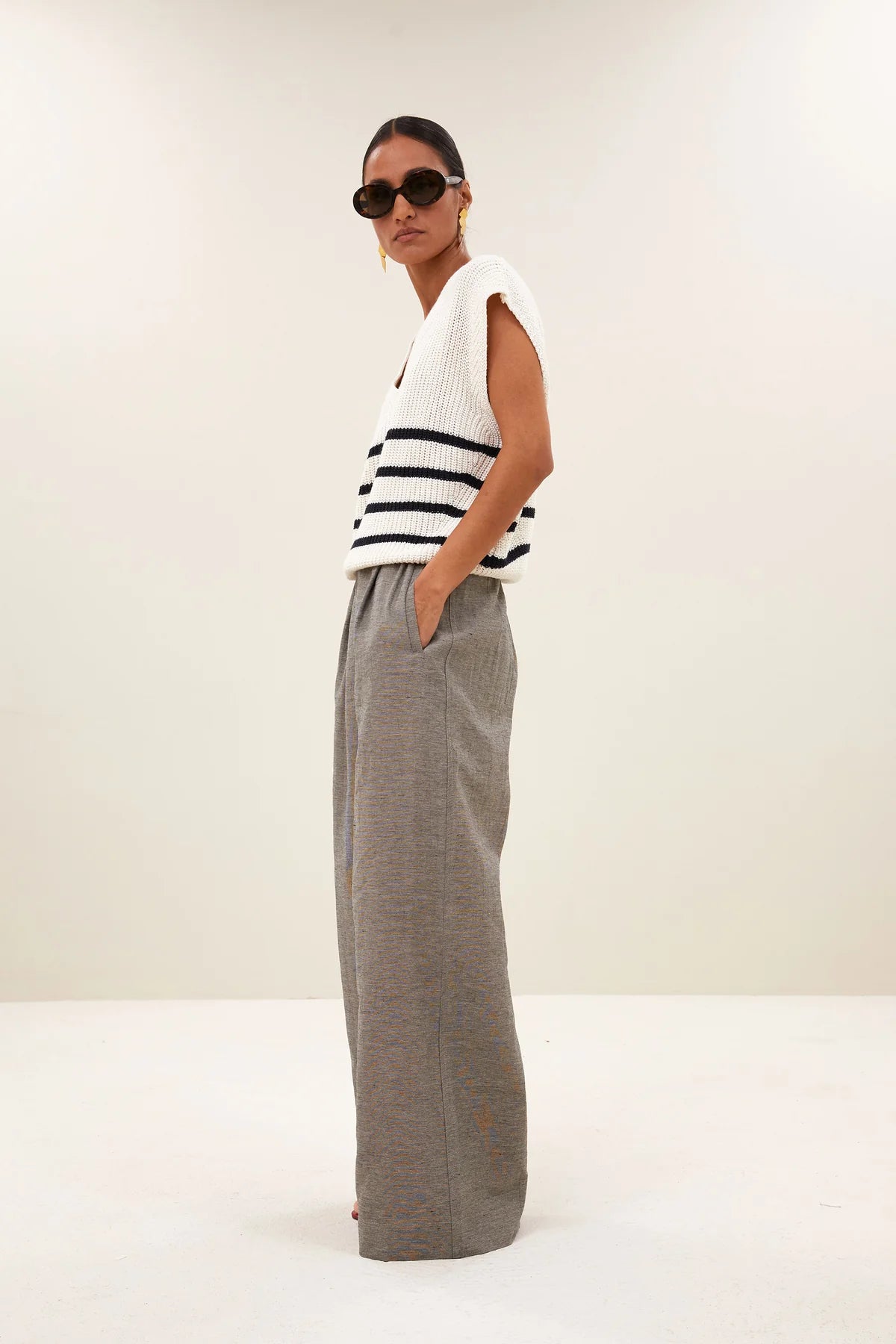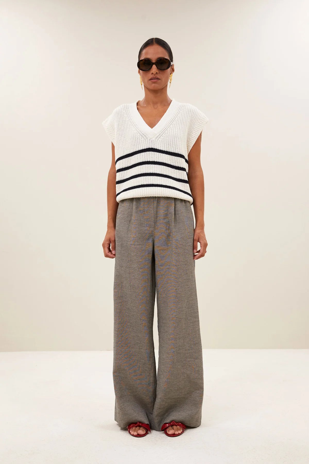 Top con estilo, de corte casual y un ajuste cómodo y normal. Gracias al escote en v y al patrón de rayas, este pulóver sin mangas tiene un aspecto fresco y a la moda.