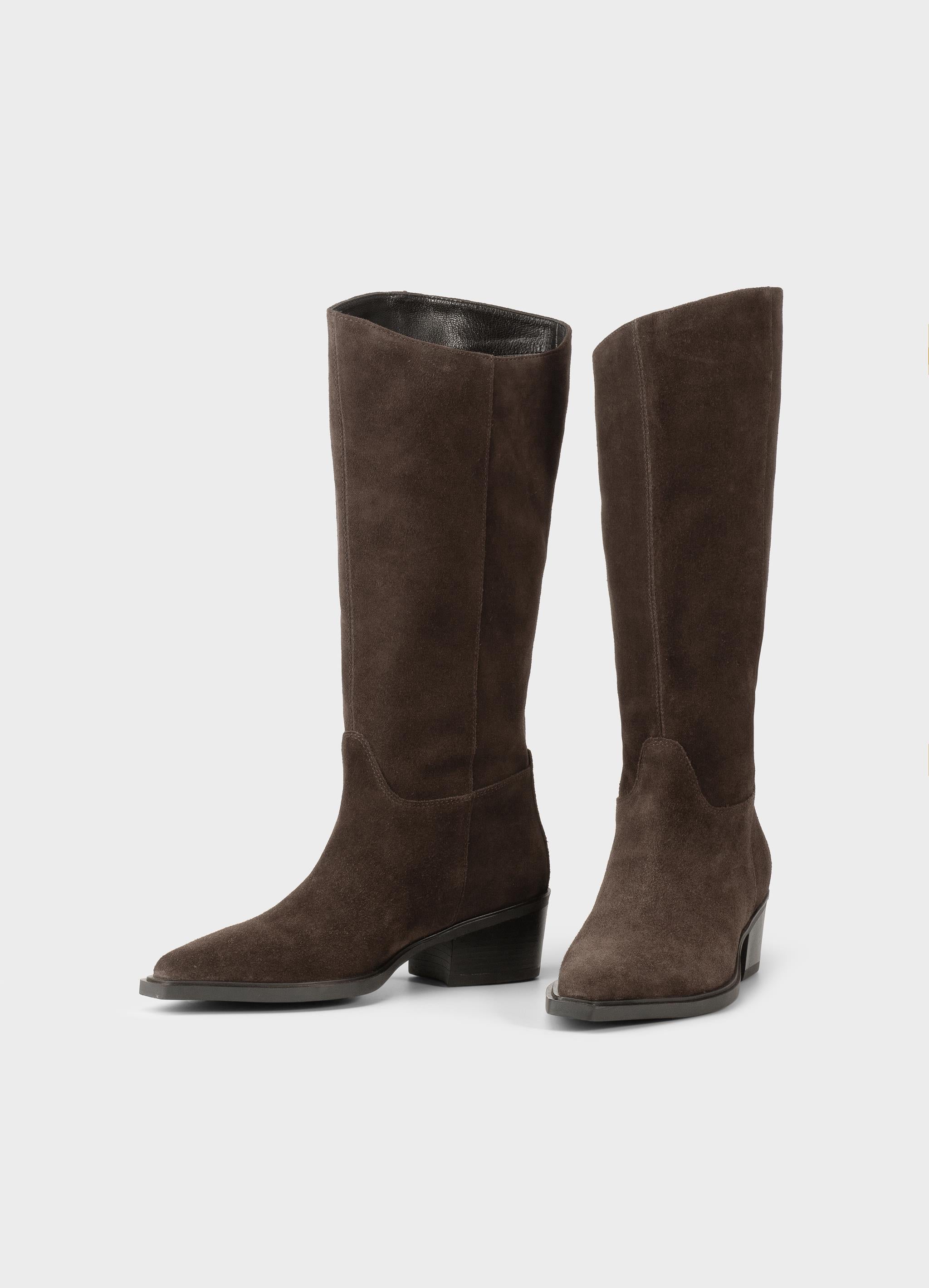 La Edition Kelsey combina siluetas clásicas con sutiles influencias del estilo western. Esta bota alta está confeccionada en ante marrón oscuro y cuenta con un diseño pull-on.