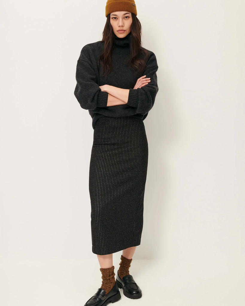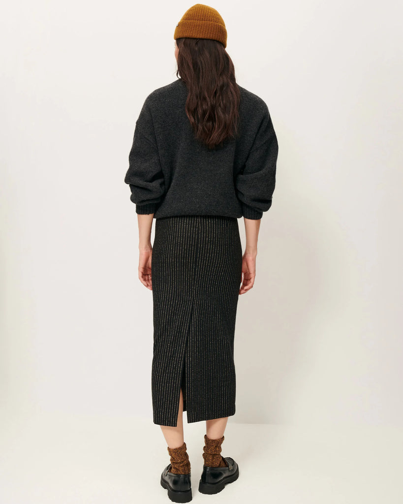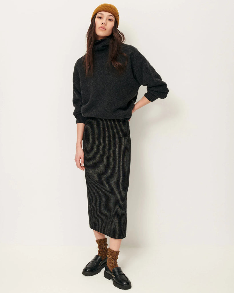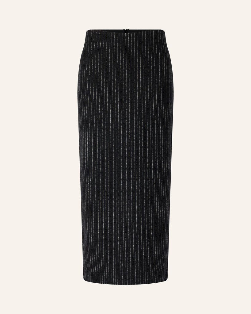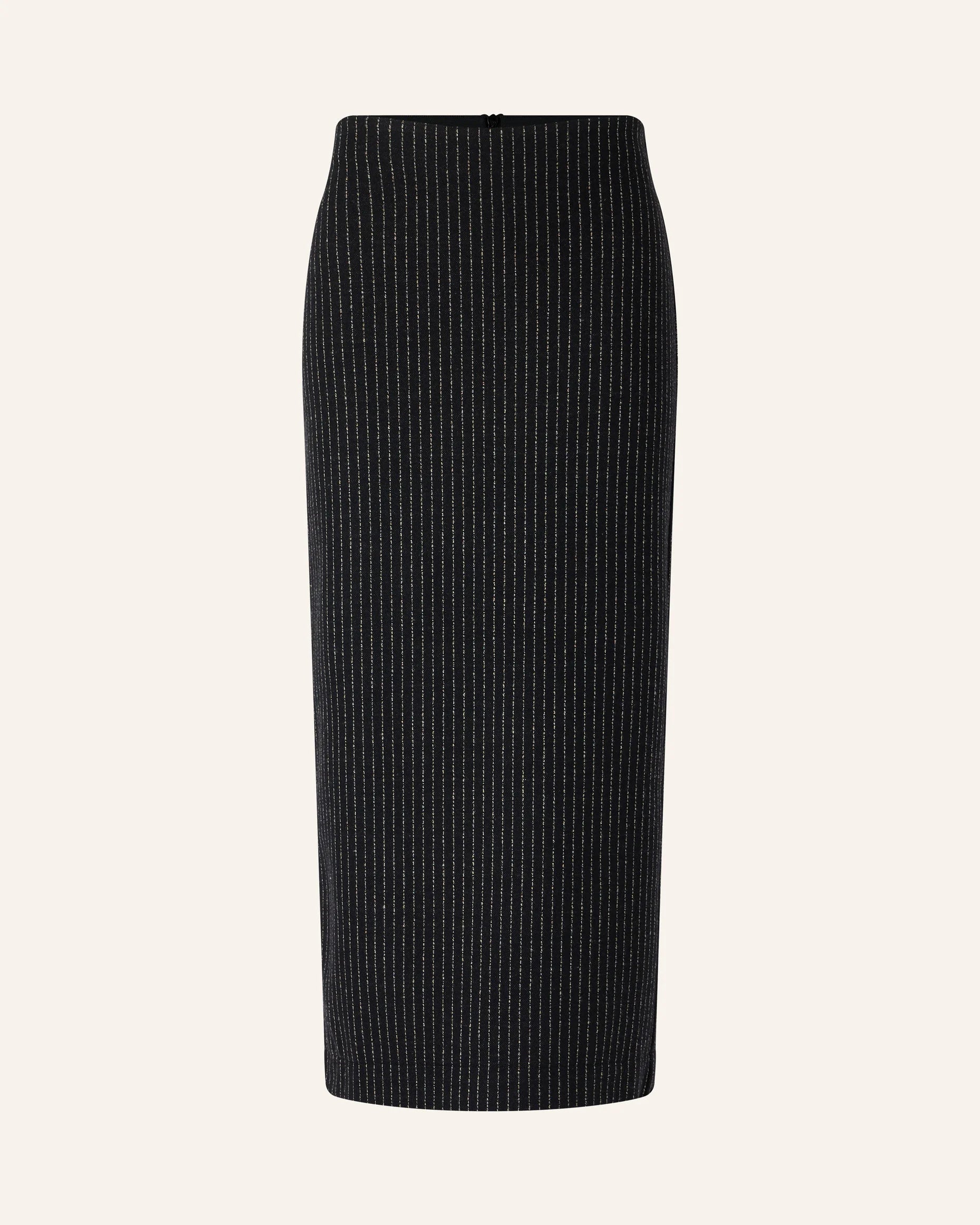Falda lápiz midi en punto interlock elástico con motivo de rayas de tenis, acabado cepillado, tejida en Italia.