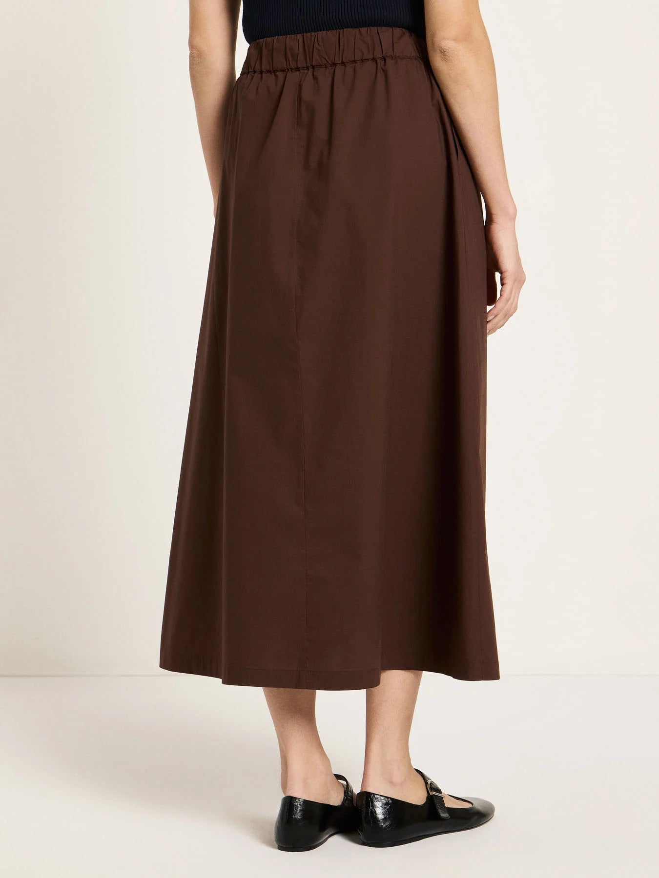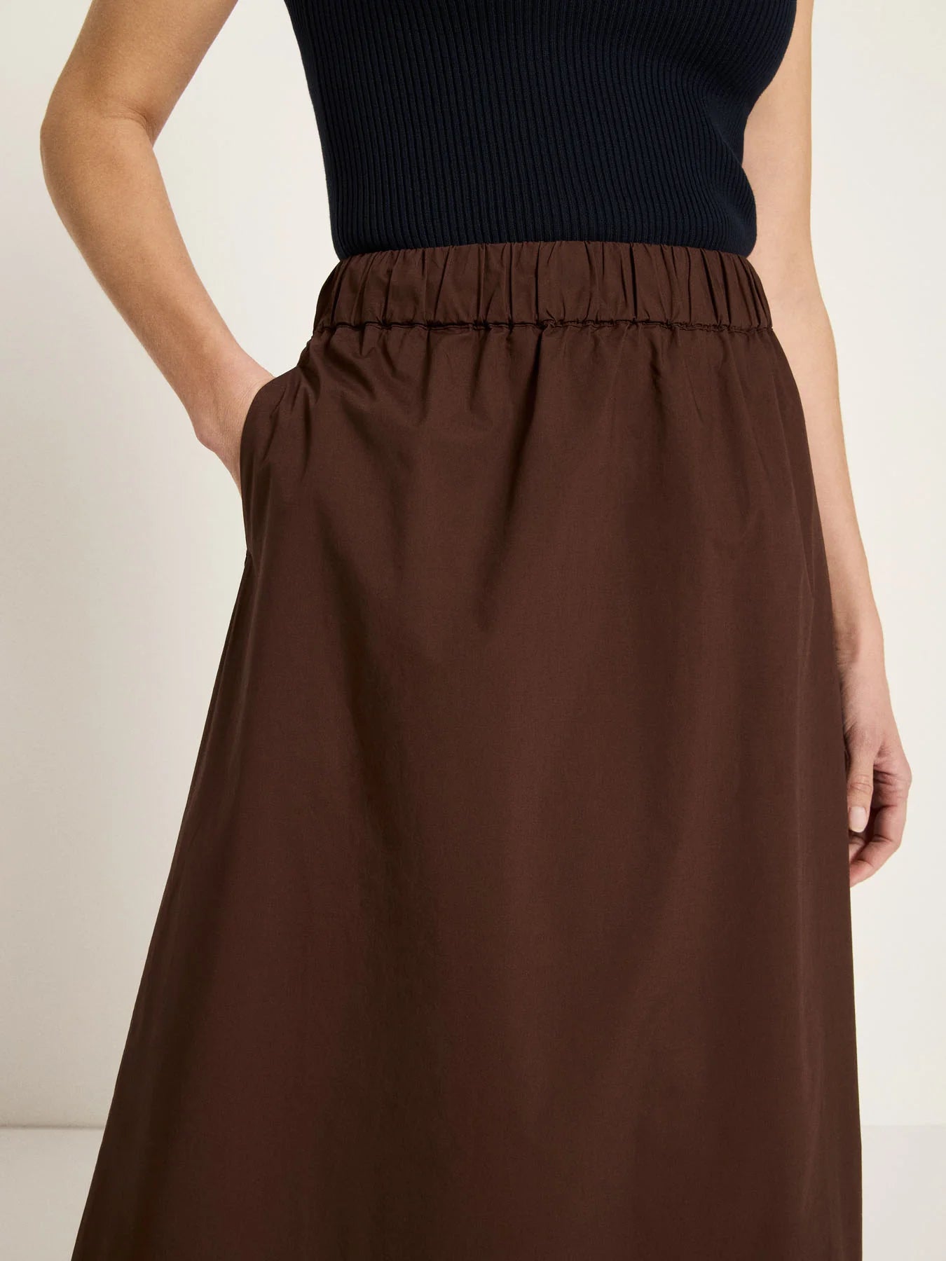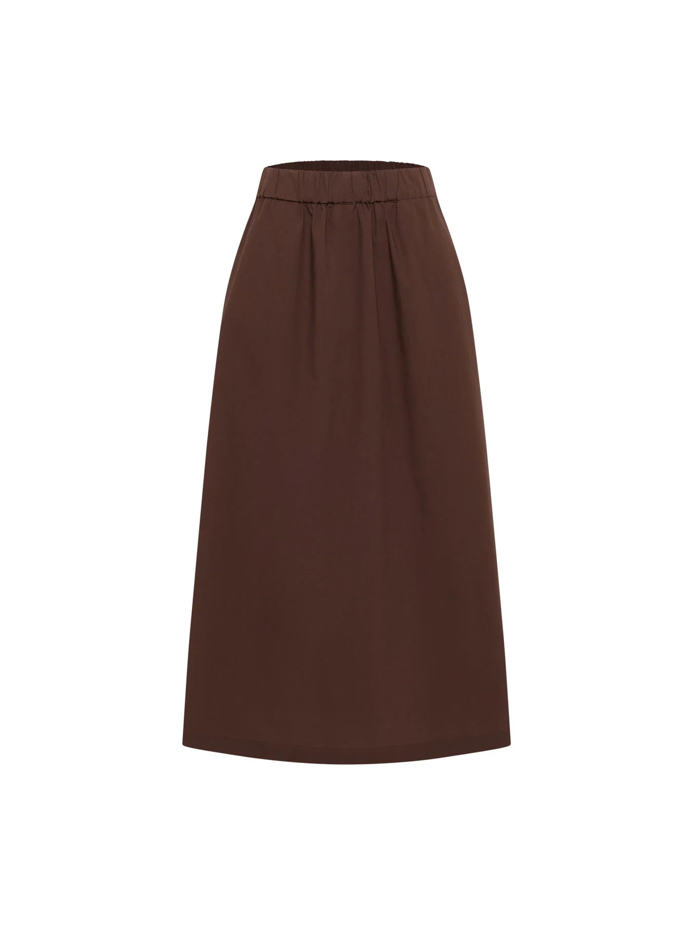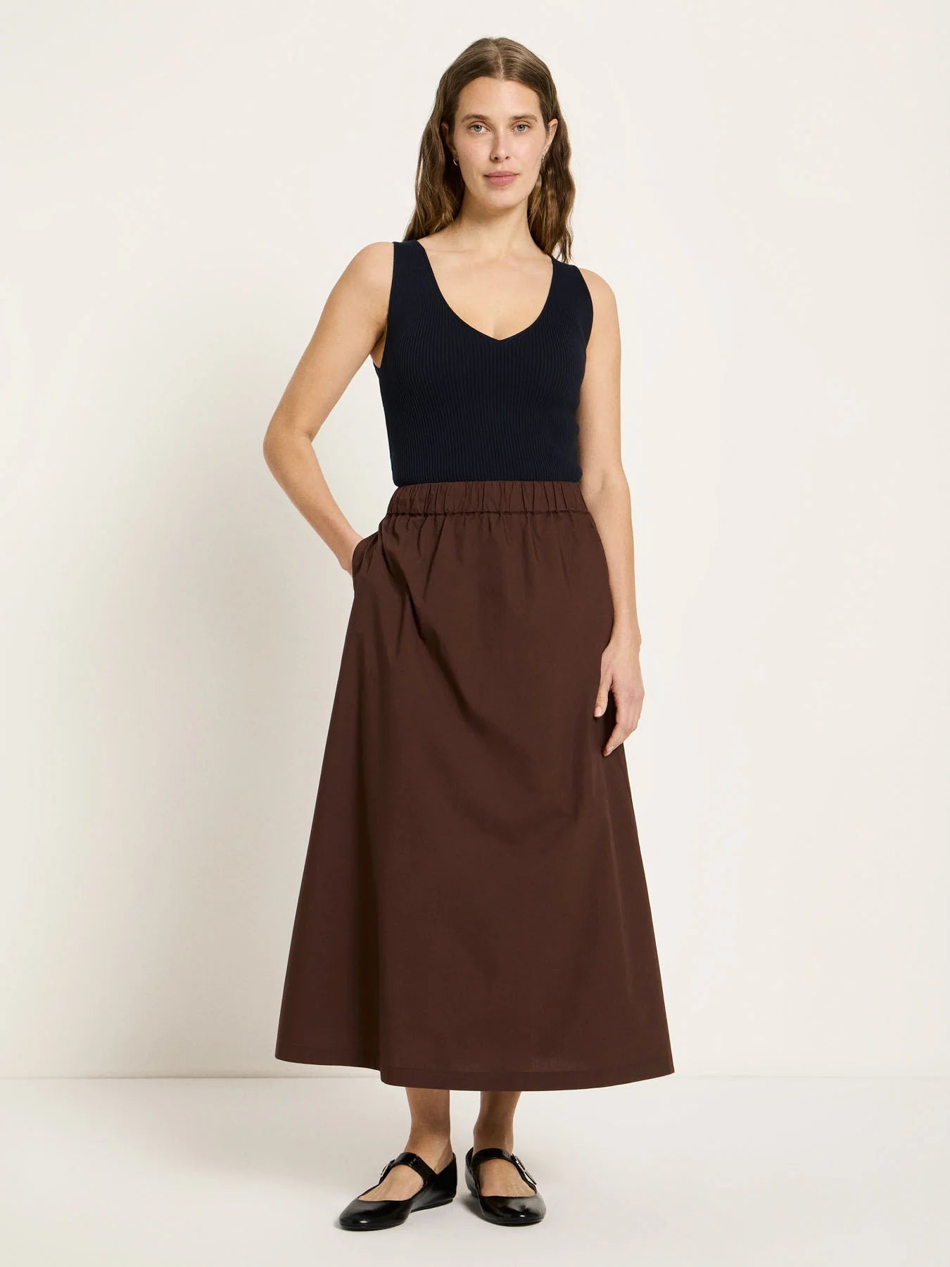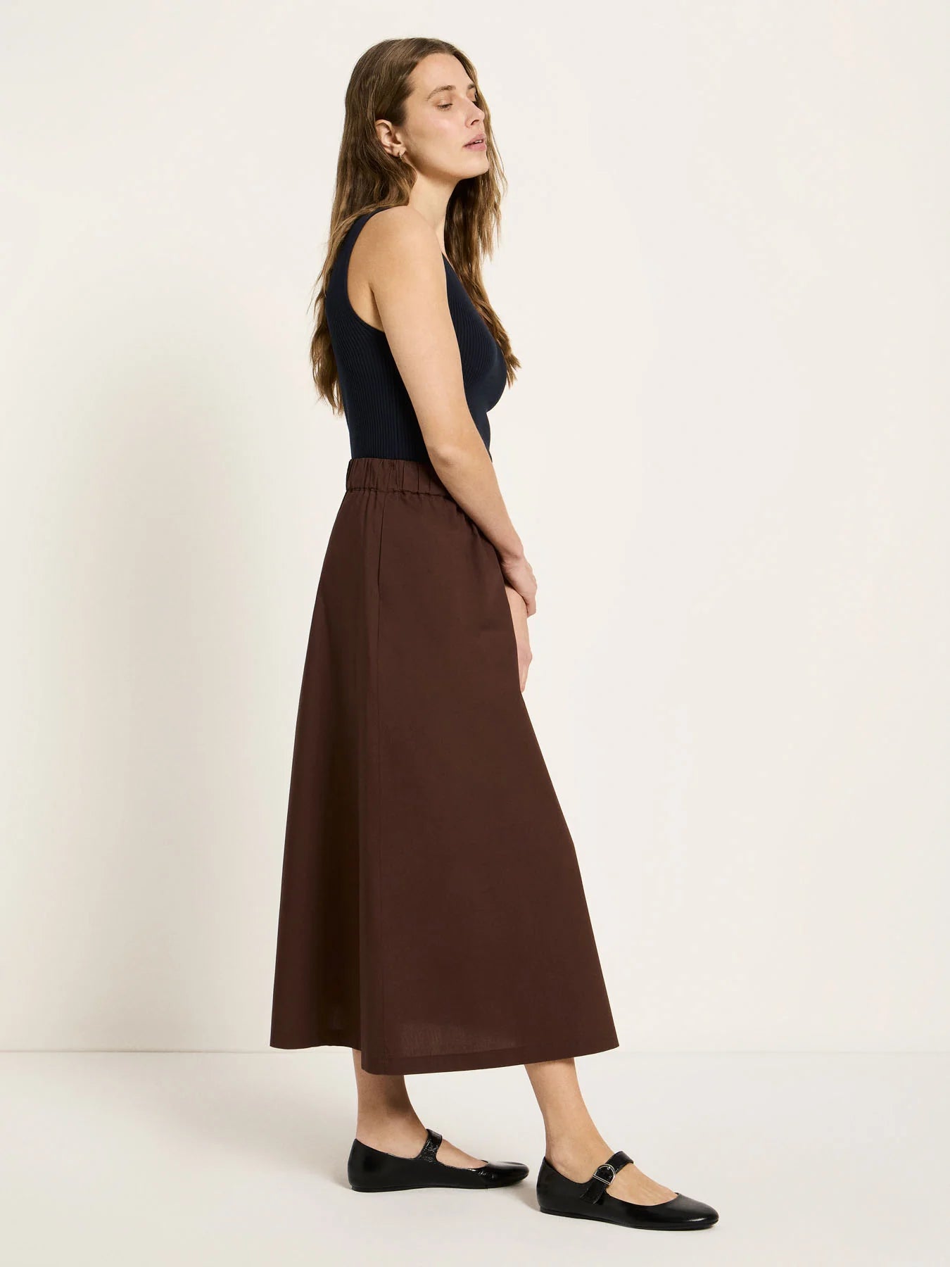 Una falda que siempre funciona: Esta falda midi, confeccionada en algodón orgánico, aporta tranquilidad y elegancia a cualquier armario. El material natural se siente de maravilla en la piel y proporciona una sensación cómoda y de alta calidad, perfecta para esos días en los que buscas un estilo sencillo pero a la vez elegante.