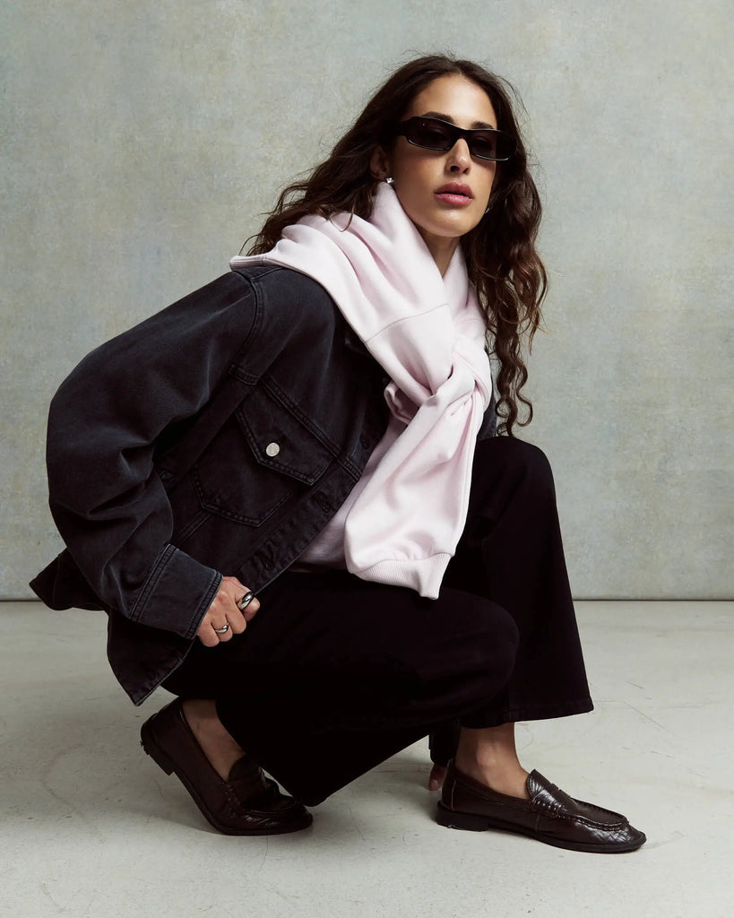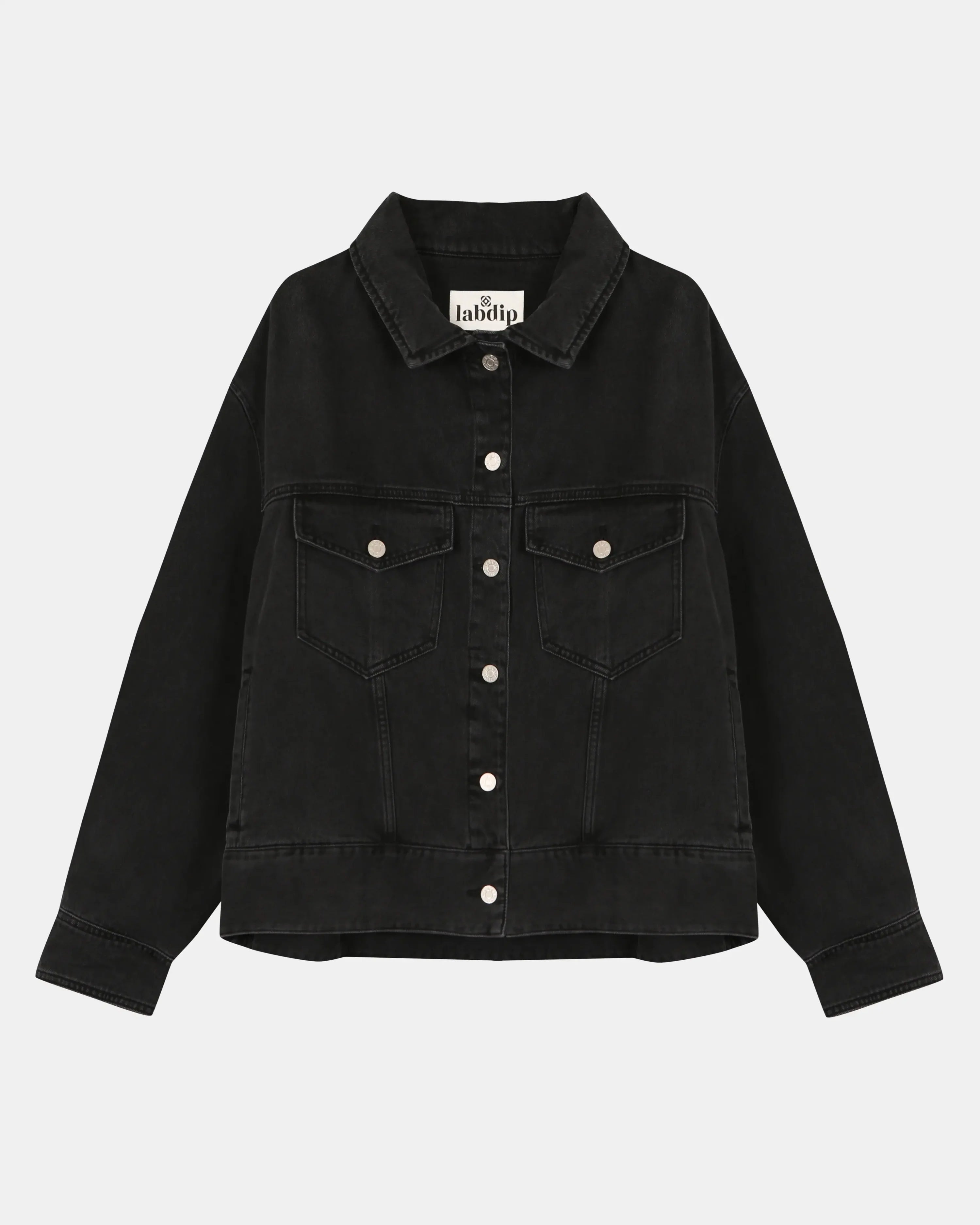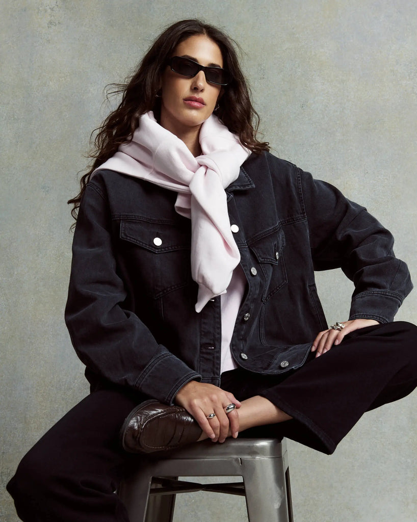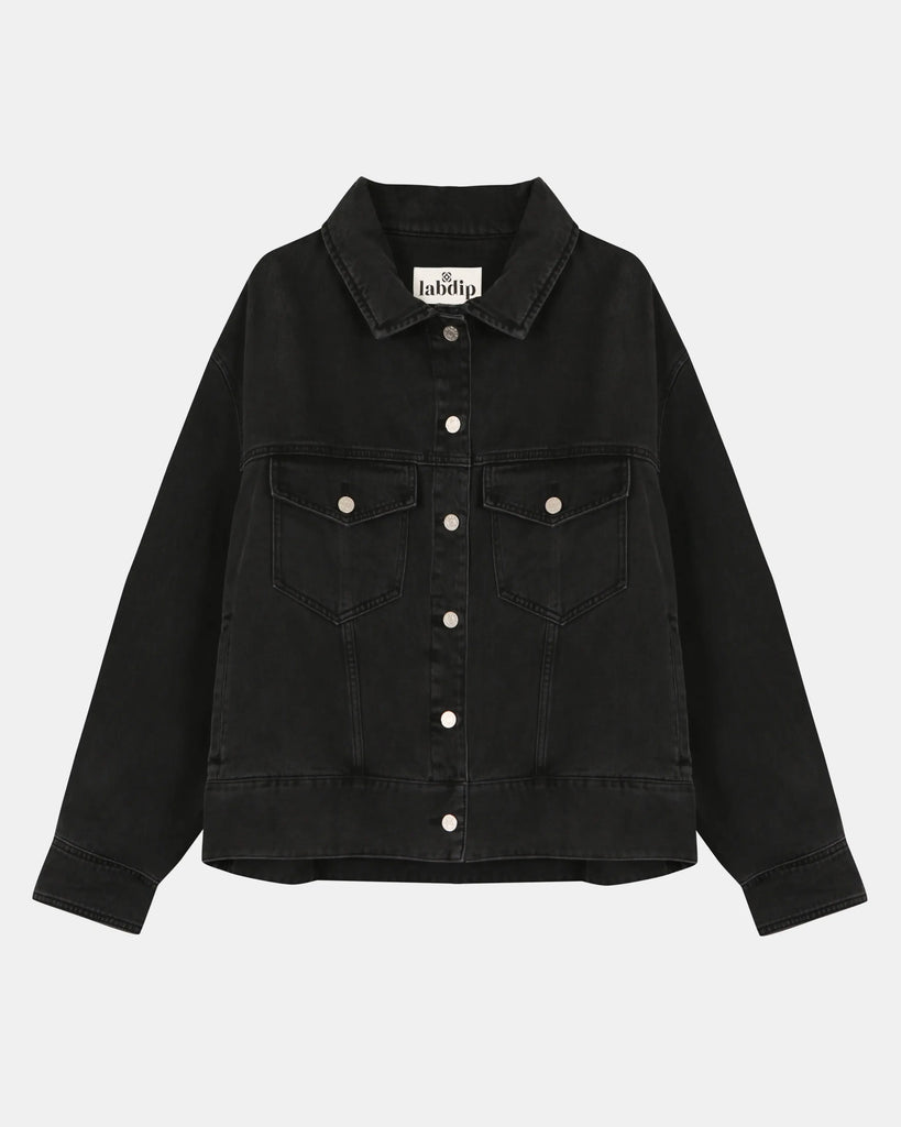 Cchaqueta OVERSIZED BAYA en denim negro lavado, inspirada en los 90.