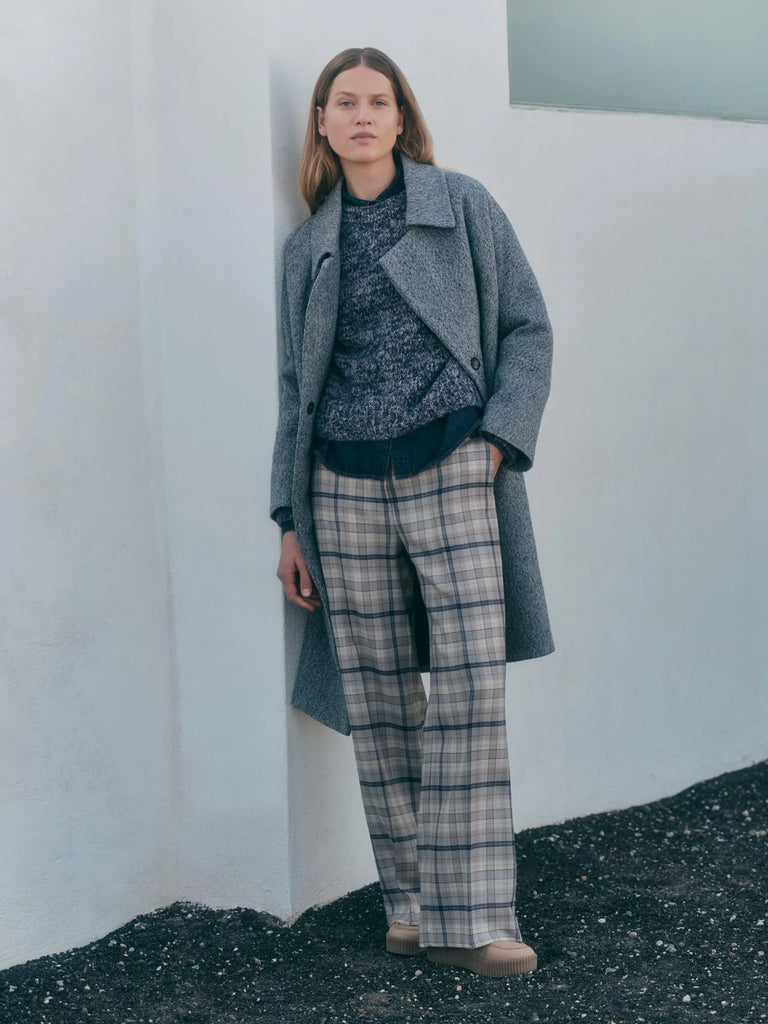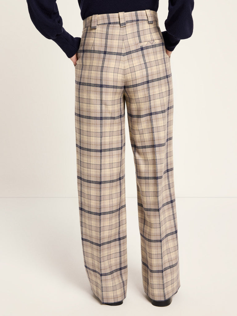 Con estampado de cuadros estos pantalones destacan por su elegancia informal y su caída fluida. Su corte amplio garantiza una sensación de elegancia informal y una comodidad excepcional, mientras que sus líneas limpias le dan un toque moderno y elegante. Gracias a su confección de alta calidad y a sus materiales naturales, estos pantalones se convertirán en tus favoritos para siempre, perfectos tanto para looks de oficina como para conjuntos informales y relajados.
