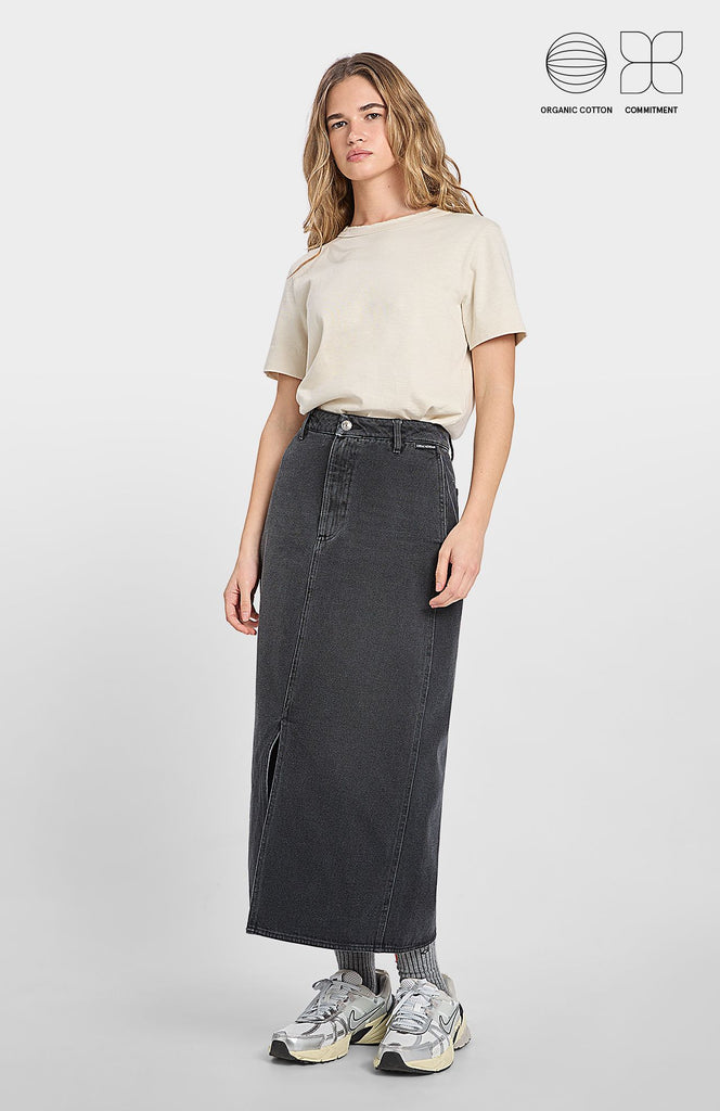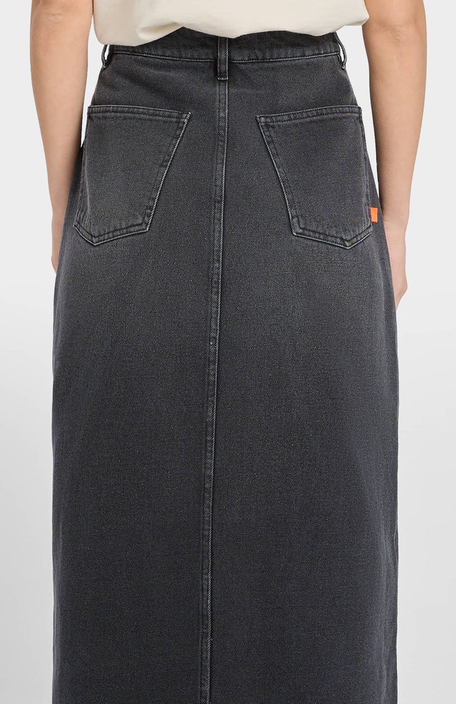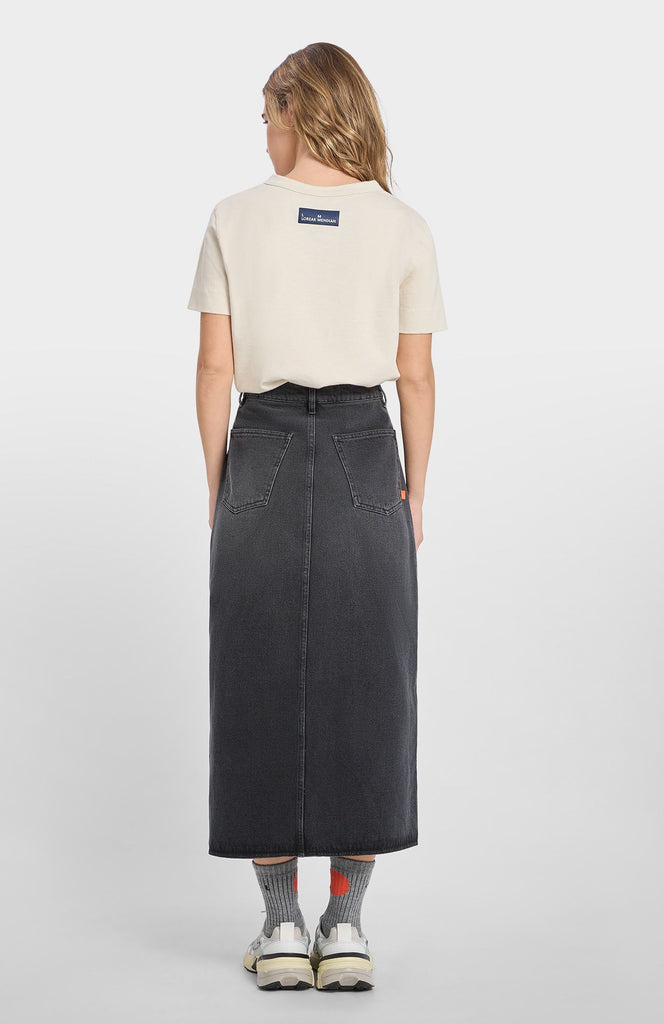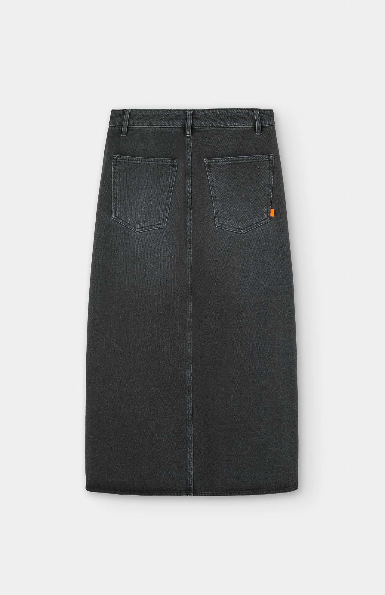 Un must en tu fondo de armario. Falda midi denim excepcional, con abertura frontal en el bajo y cierre delantero con cremallera y botón para una mayor comodidad.