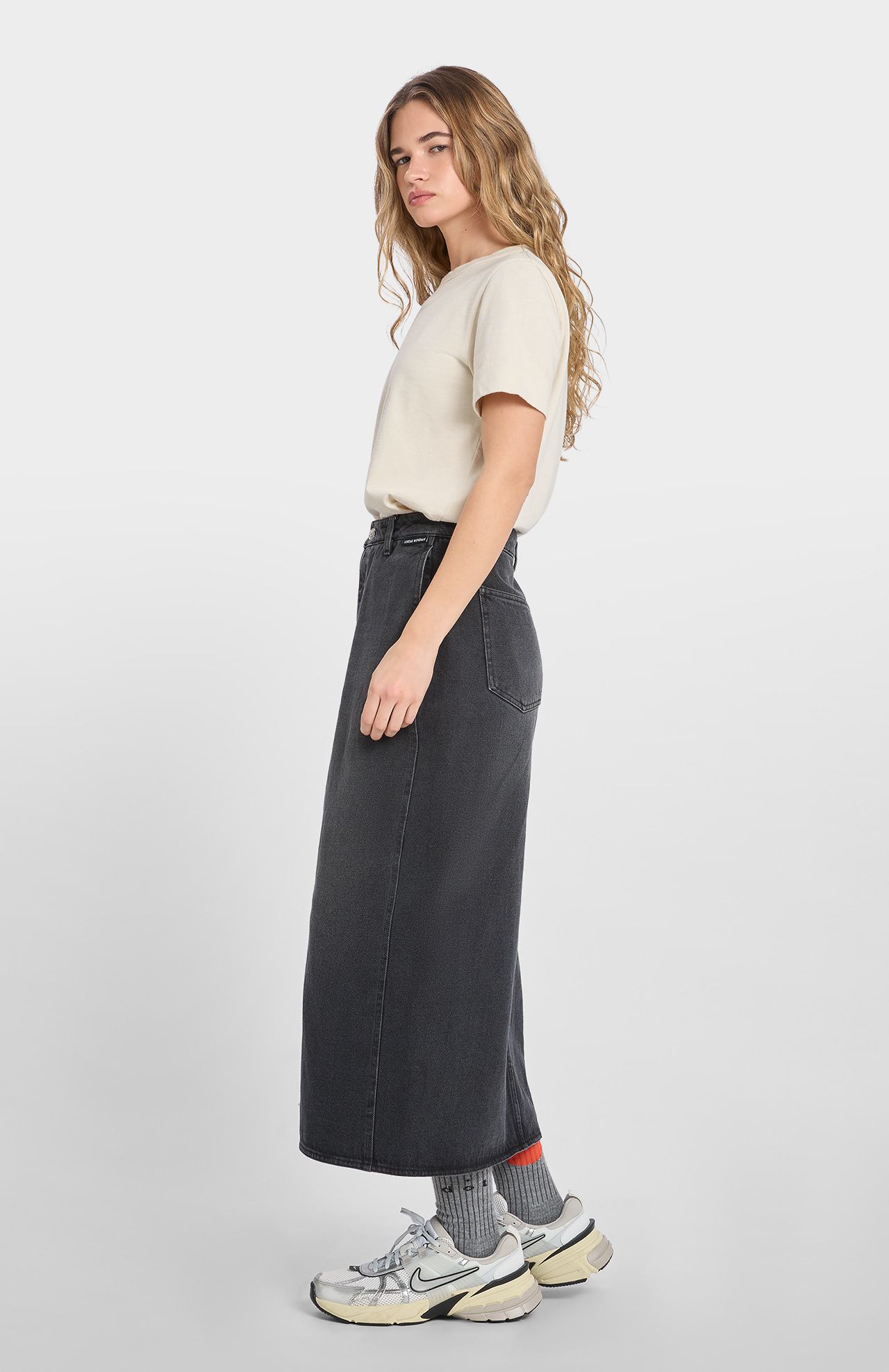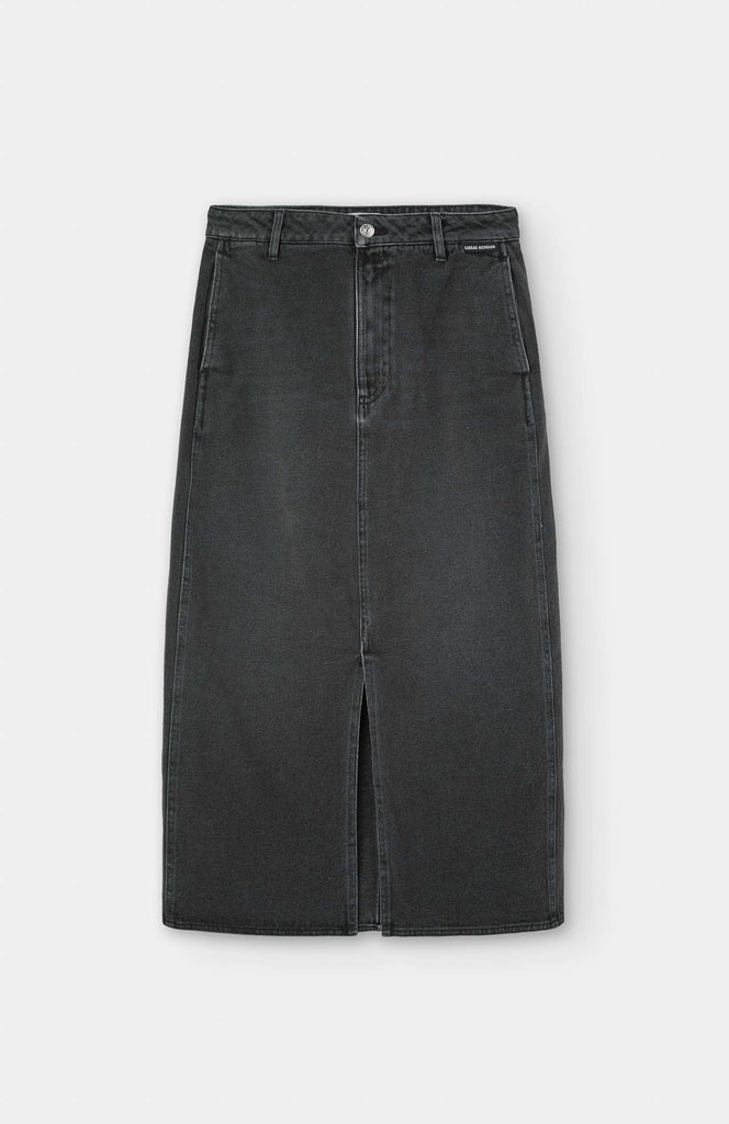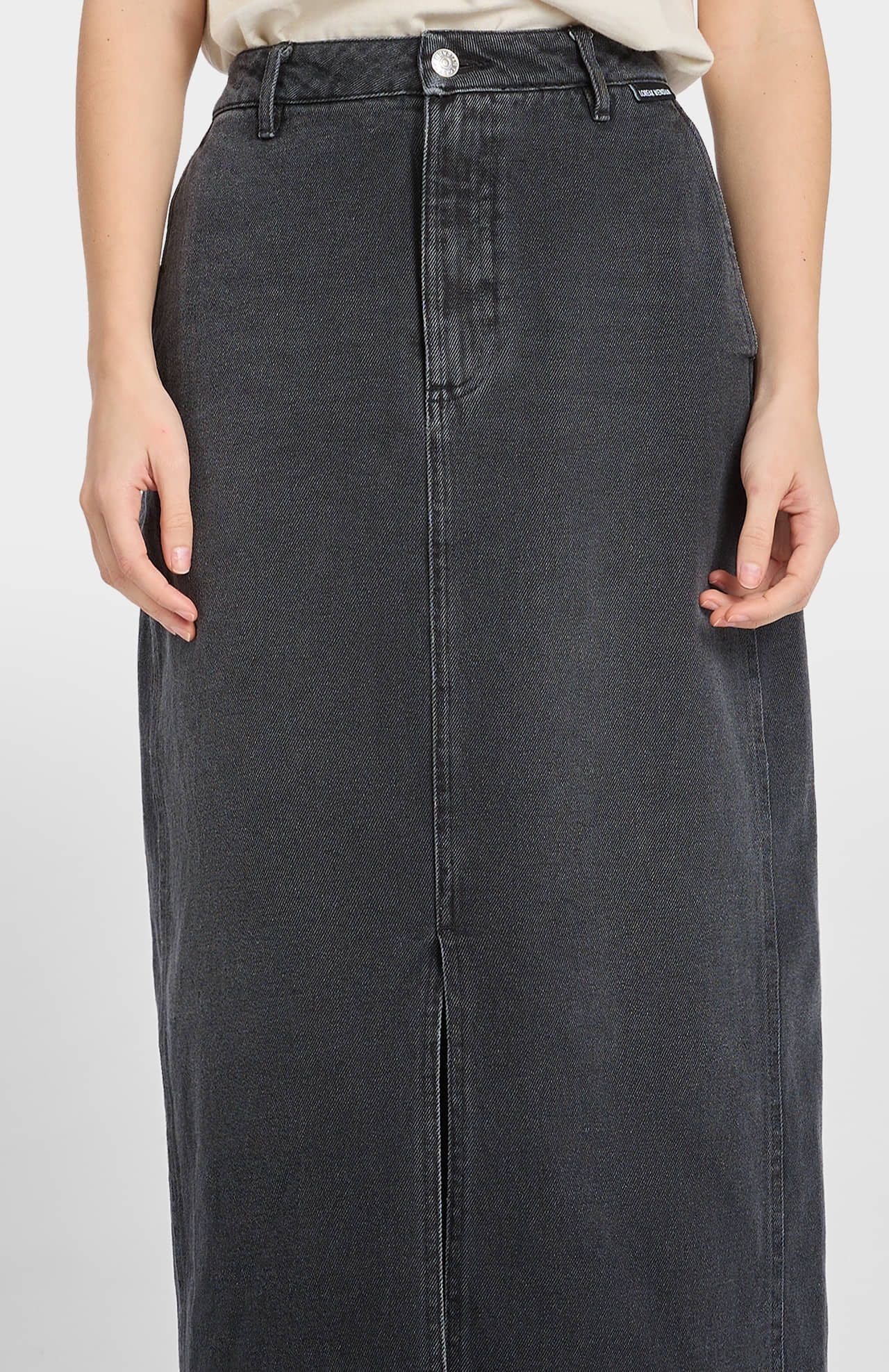 Un must en tu fondo de armario. Falda midi denim excepcional, con abertura frontal en el bajo y cierre delantero con cremallera y botón para una mayor comodidad.
