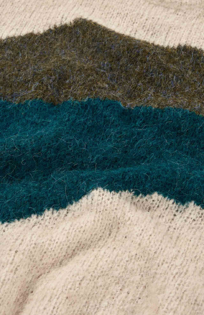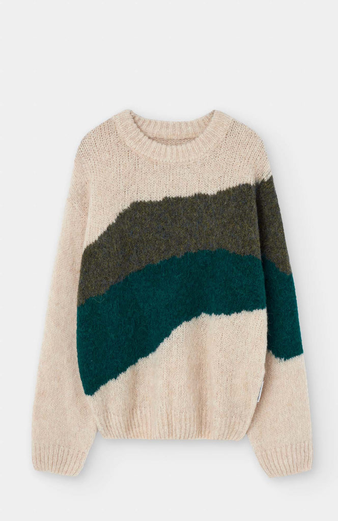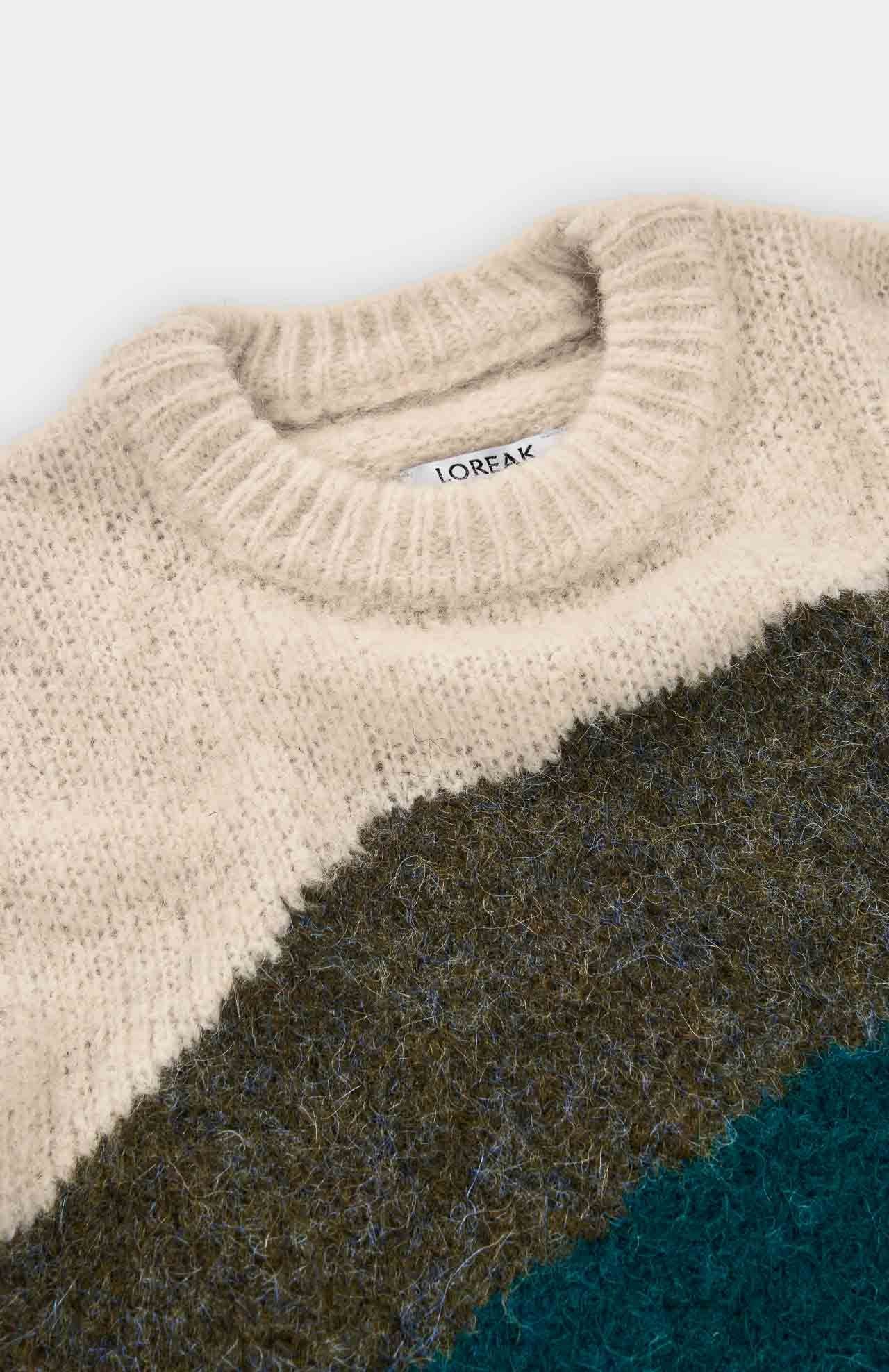 Jersey de punto Jacquard en colores en contraste. Con cuello redondo y mangas largas, y acabados en rib, es la pieza ideal para un look urbano y vibrante.