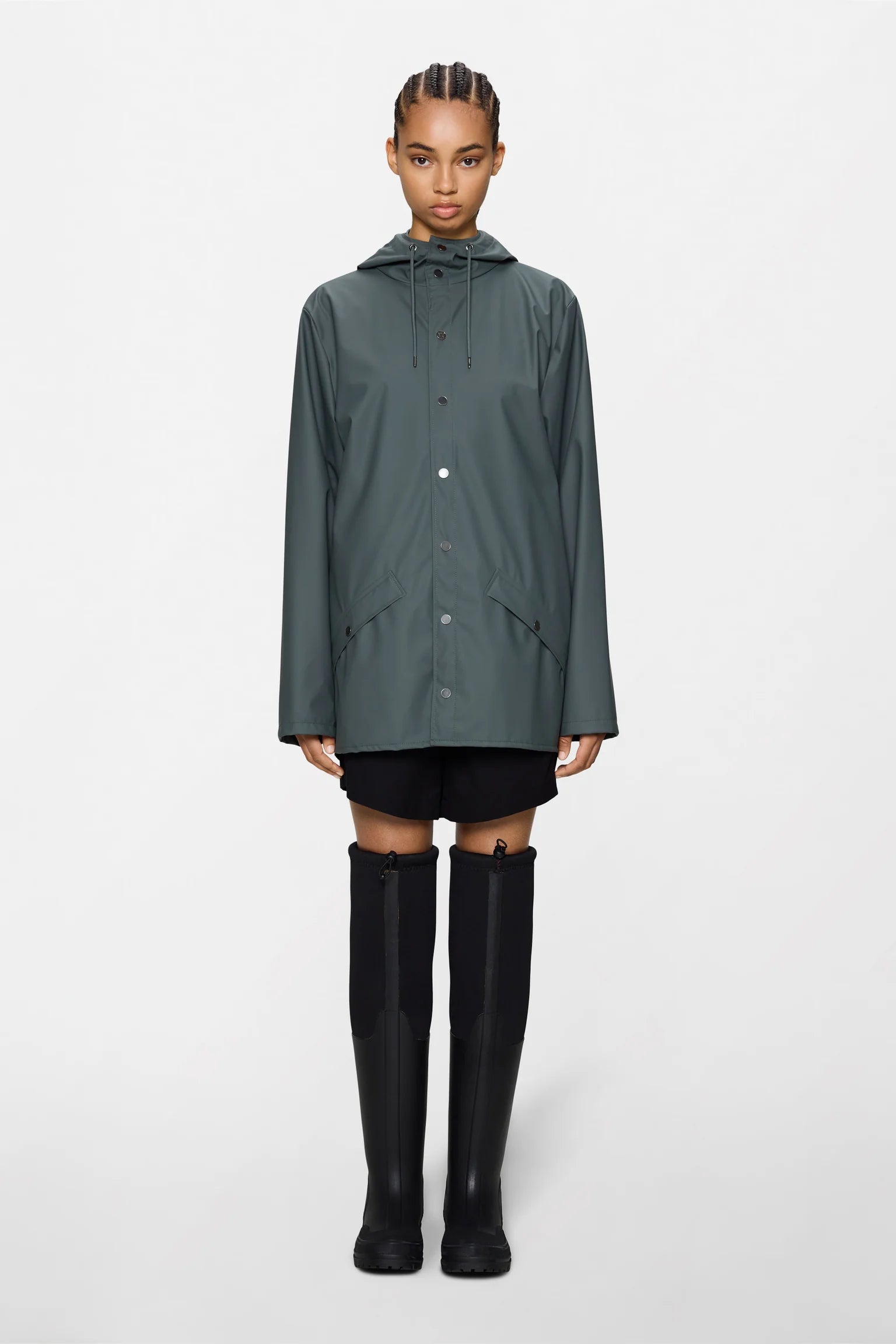 - Capucha con visera incorporada y cordón ajustable
