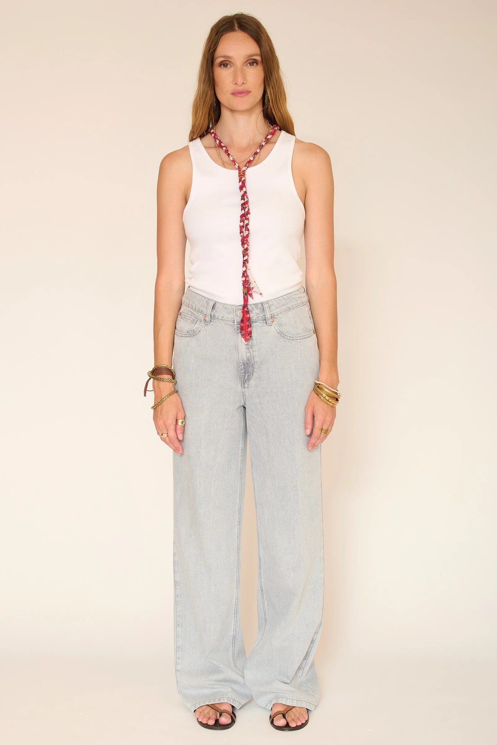 Los pantalones Poka ofrecen un denim fresco y sin esfuerzo: un corte recto y relajado, una cintura favorecedora y una caída fluida que alarga la silueta. Su lavado gris claro les da ese look desenfadado que tanto nos gusta, haciéndolos fáciles de combinar y perfectos para añadir un toque de estilo a un atuendo más formal. Un básico de armario para usar año tras año.