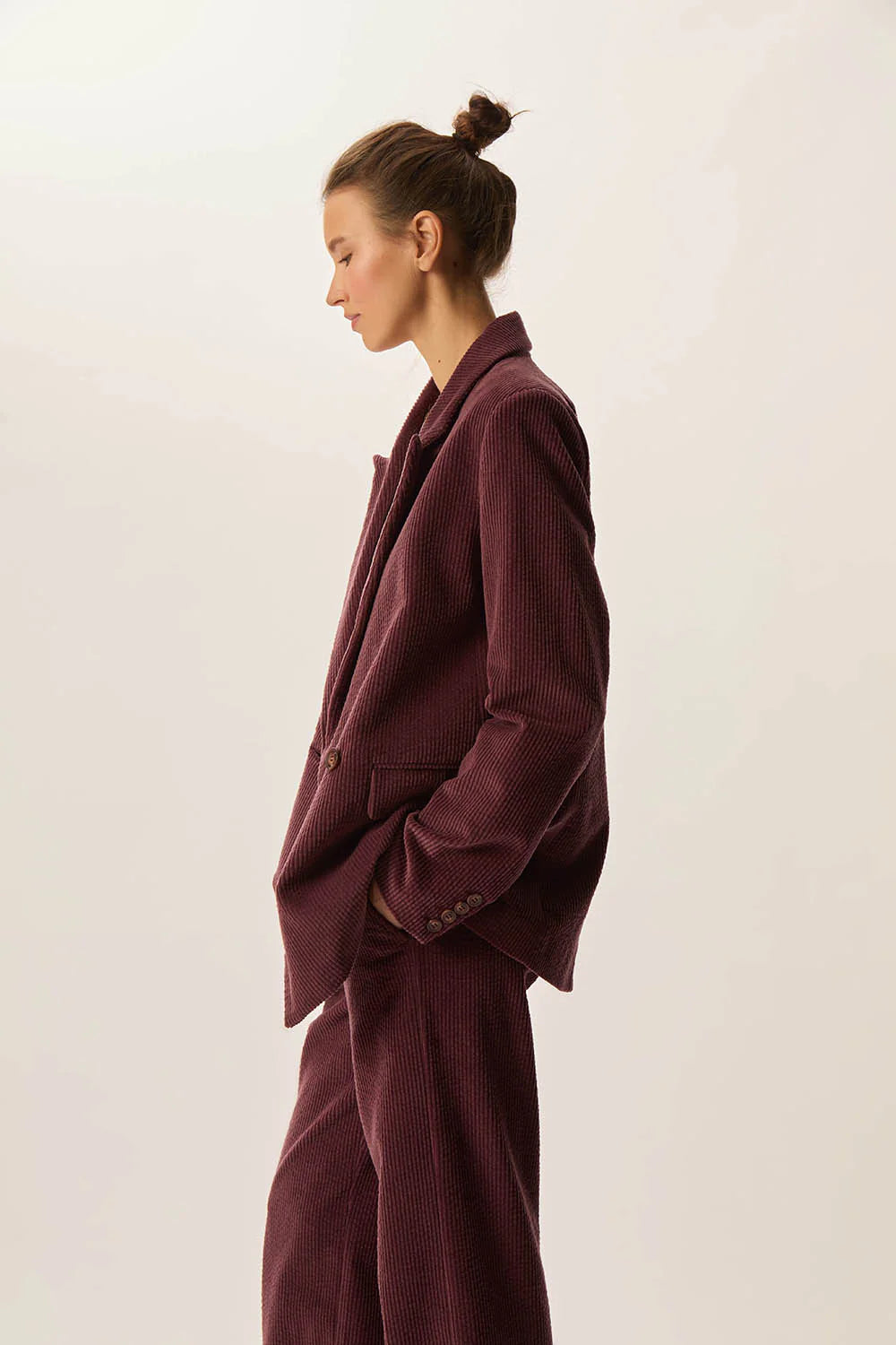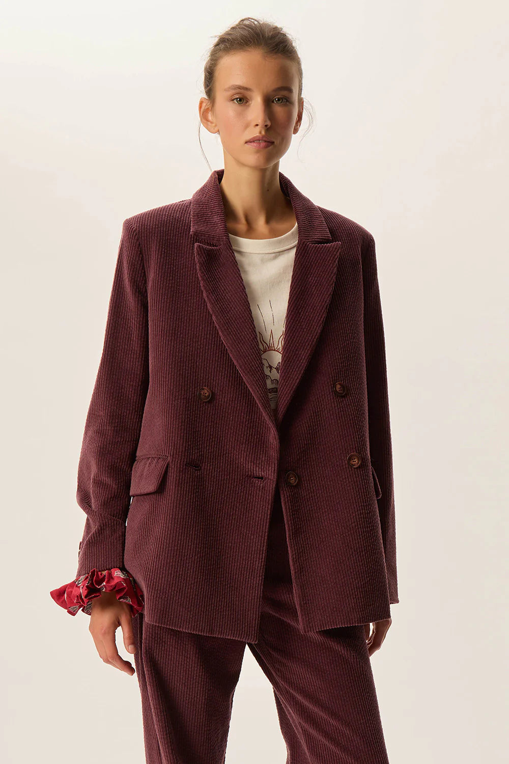 Una prenda icónica para usar de día y de noche, la chaqueta de sastre Sianette se inspira en los blazers cruzados masculinos. Actualizada en pana cálida, resistente y cómoda, esta prenda decididamente moderna cuenta con hombreras, cierre de doble botonadura y bolsillos de solapa.
