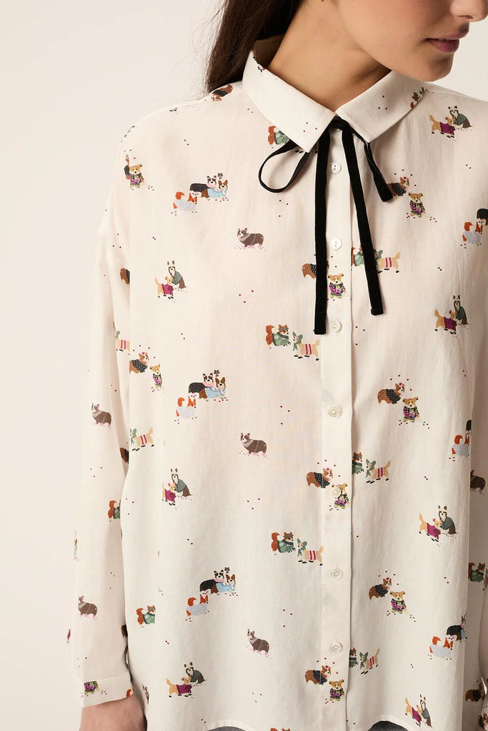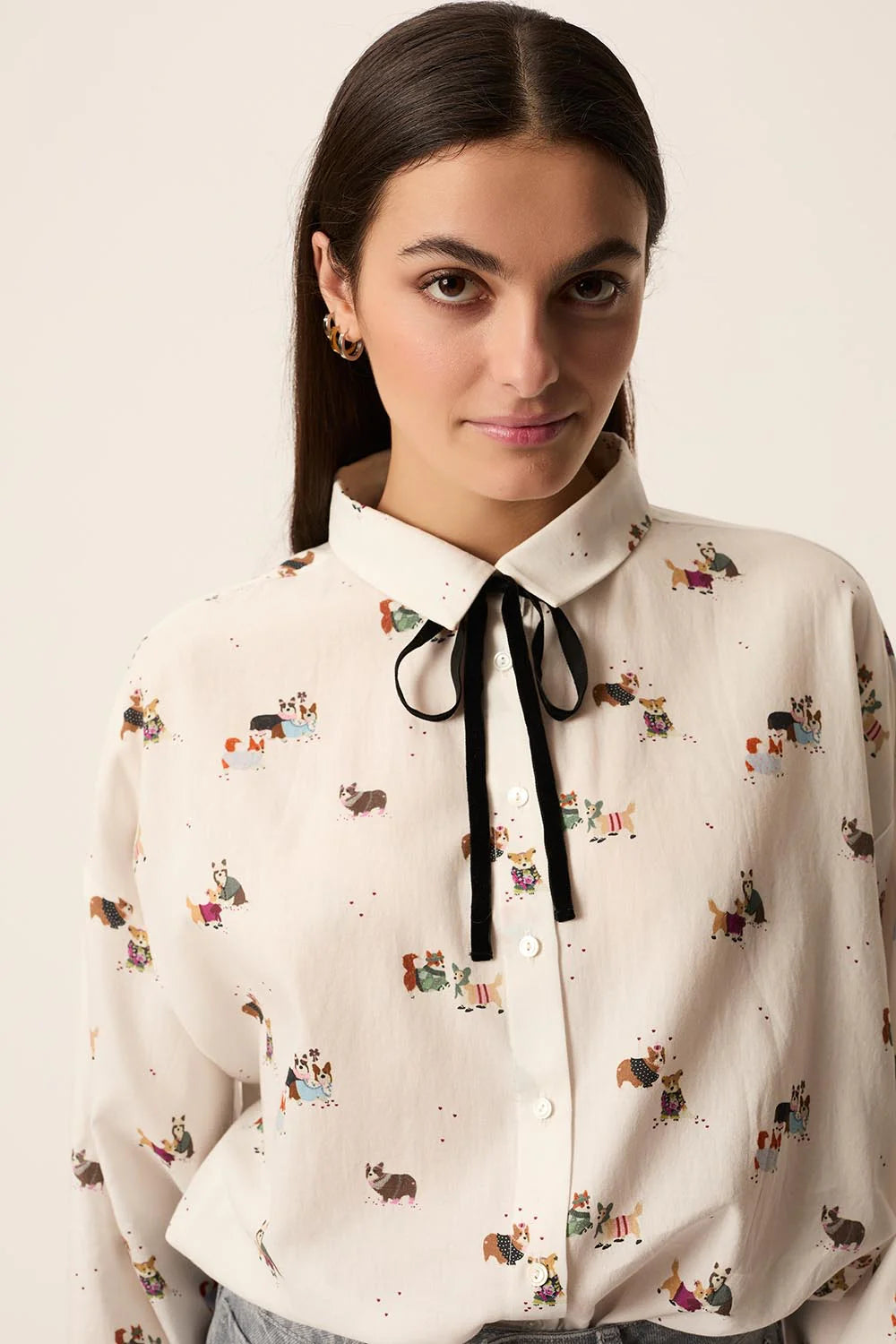 • Como un guiño a nuestros fieles amigos peludos, el exclusivo estampado "Corgi" de Des Petits Hauts es una divertida incorporación a la colección. Este estampado de perros sobre un fondo crudo combina un humor sutil con un toque caprichoso, aportando alegría a tu armario.