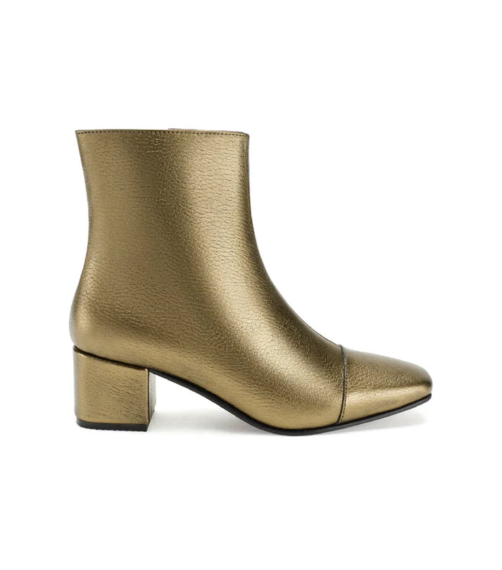 Botín de piel con cremallera lateral interior y tacón de 5 cm.