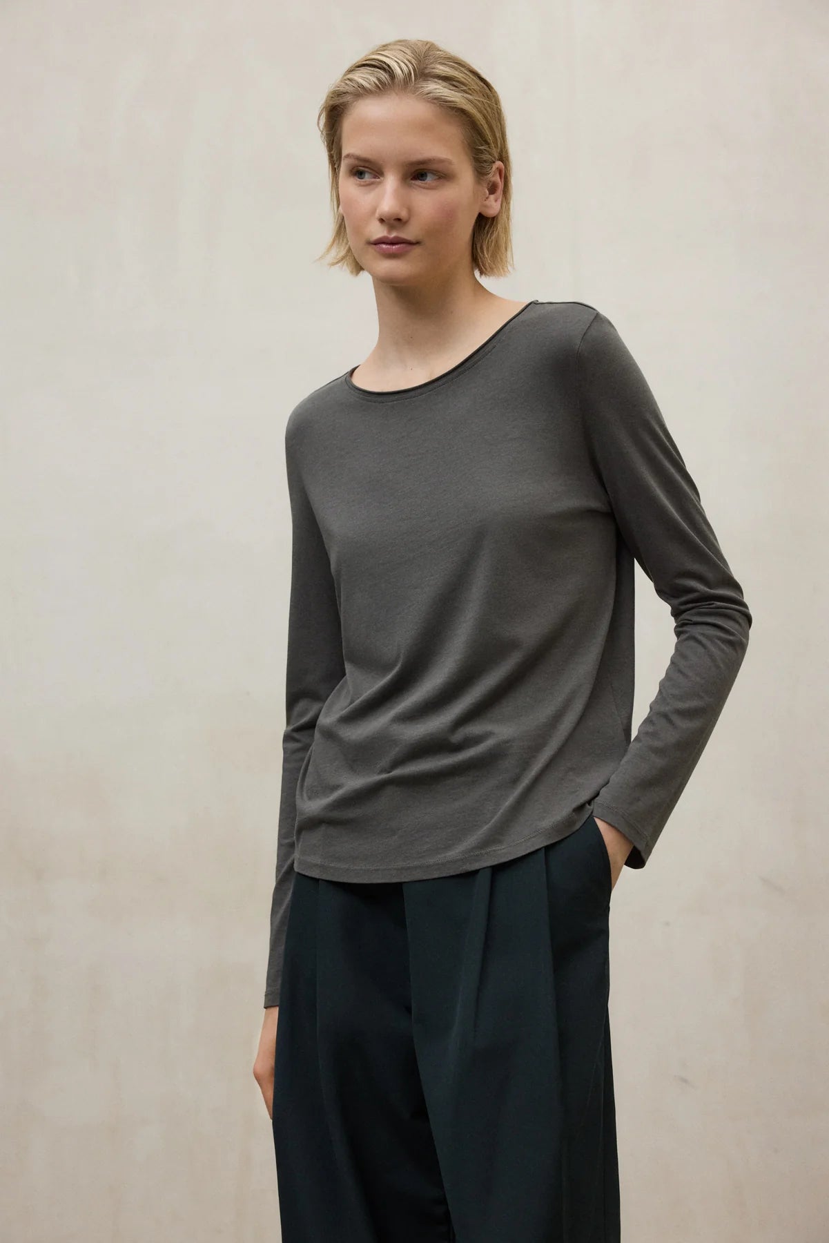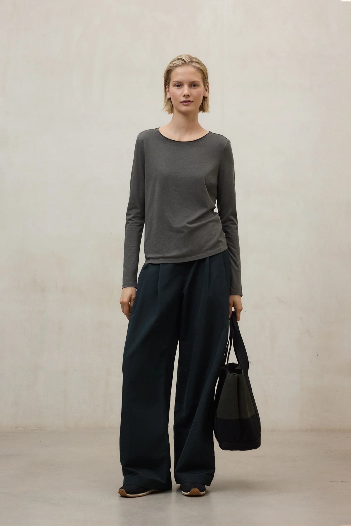 La Camiseta Cale está confeccionada con 52% Algodón orgánico y 48% TENCEL™ Lyocell. Las fibras TENCEL™ Lyocell provienen de pulpa de madera de bosques certificados y con procesos de circuito cerrado siguiendo los estándares ambientales más altos.