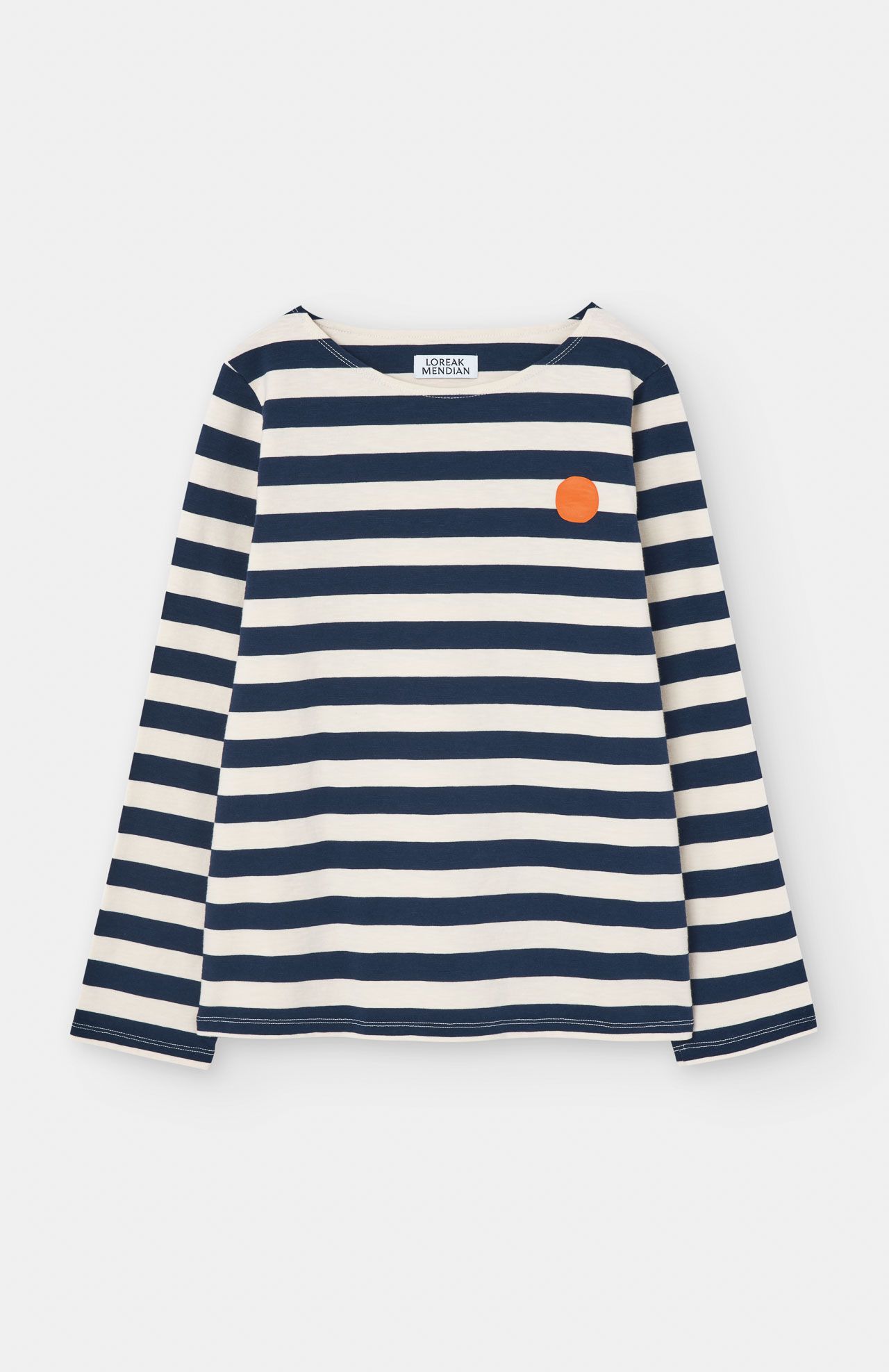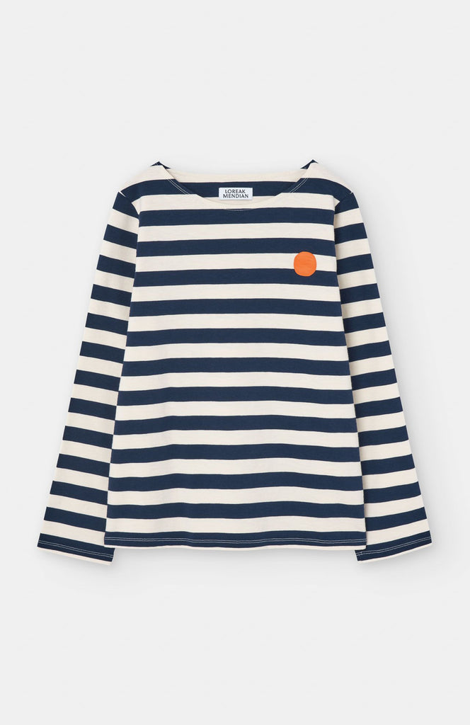 Camiseta de rayas perfecta para cualquier ocasión. Una nueva forma de vestir de forma funcional sin renunciar a la sostenibilidad, gracias a su material principal el algodón orgánico. Además, el detalle DOT hace que sea una prenda de lo más original.