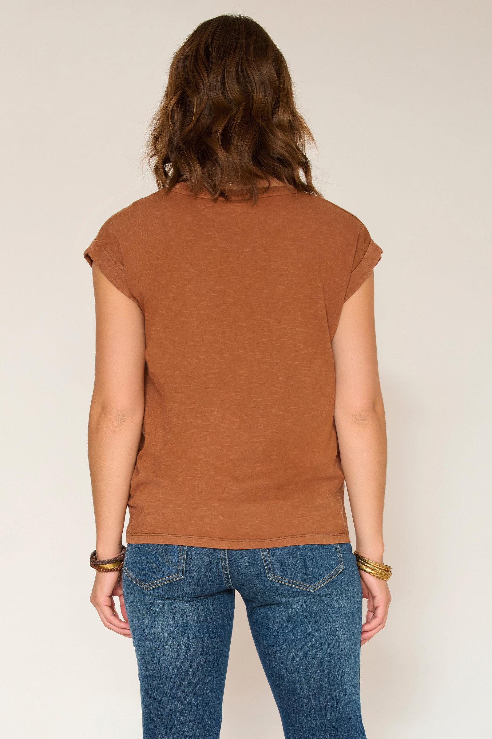 La camiseta TANTAL CAMEL es imprescindible para quienes aprecian un estilo casual y moderno. Su cálido color camello terroso combina fácilmente con otros tonos, lo que la hace versátil para diversas ocasiones.