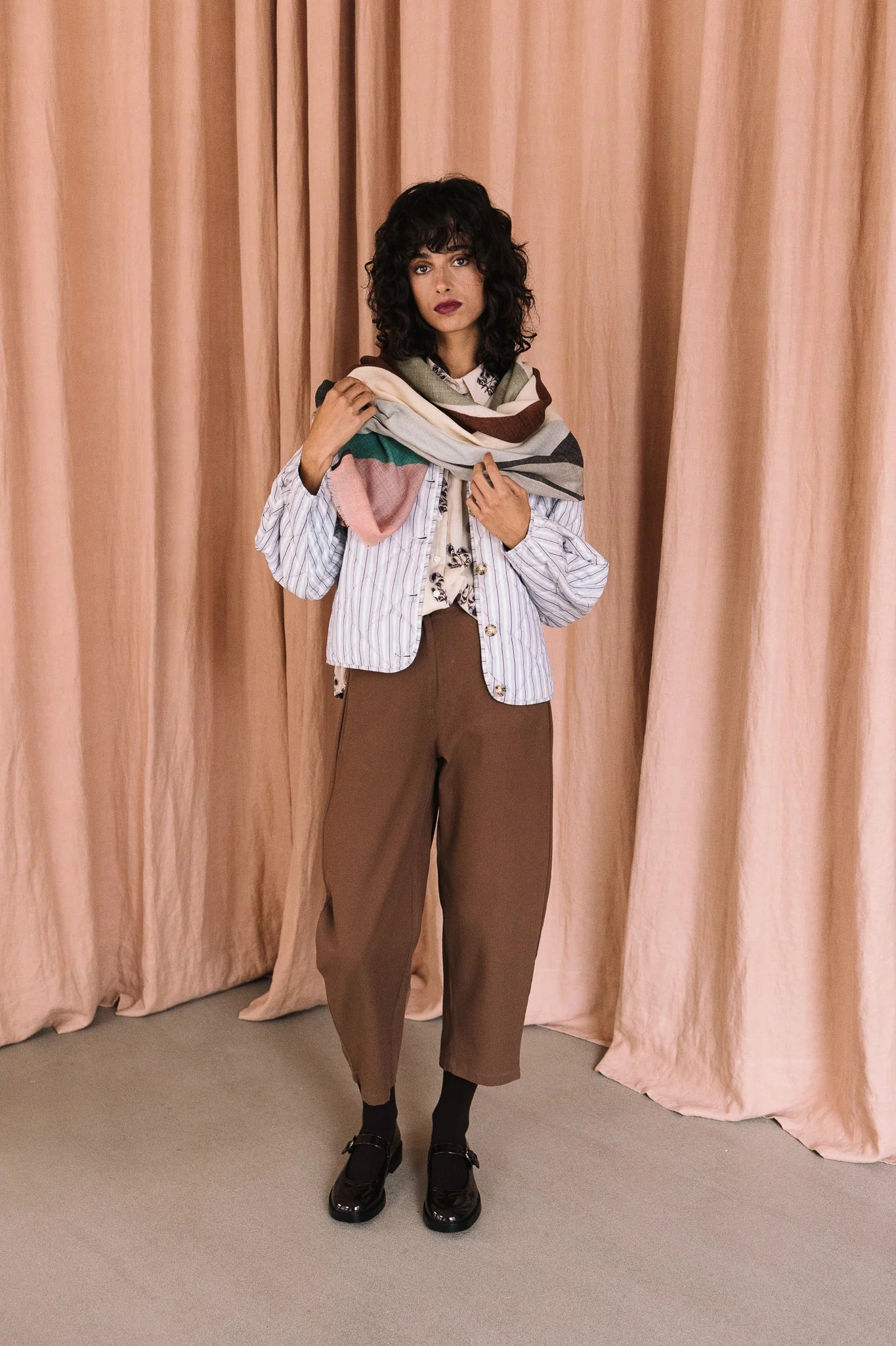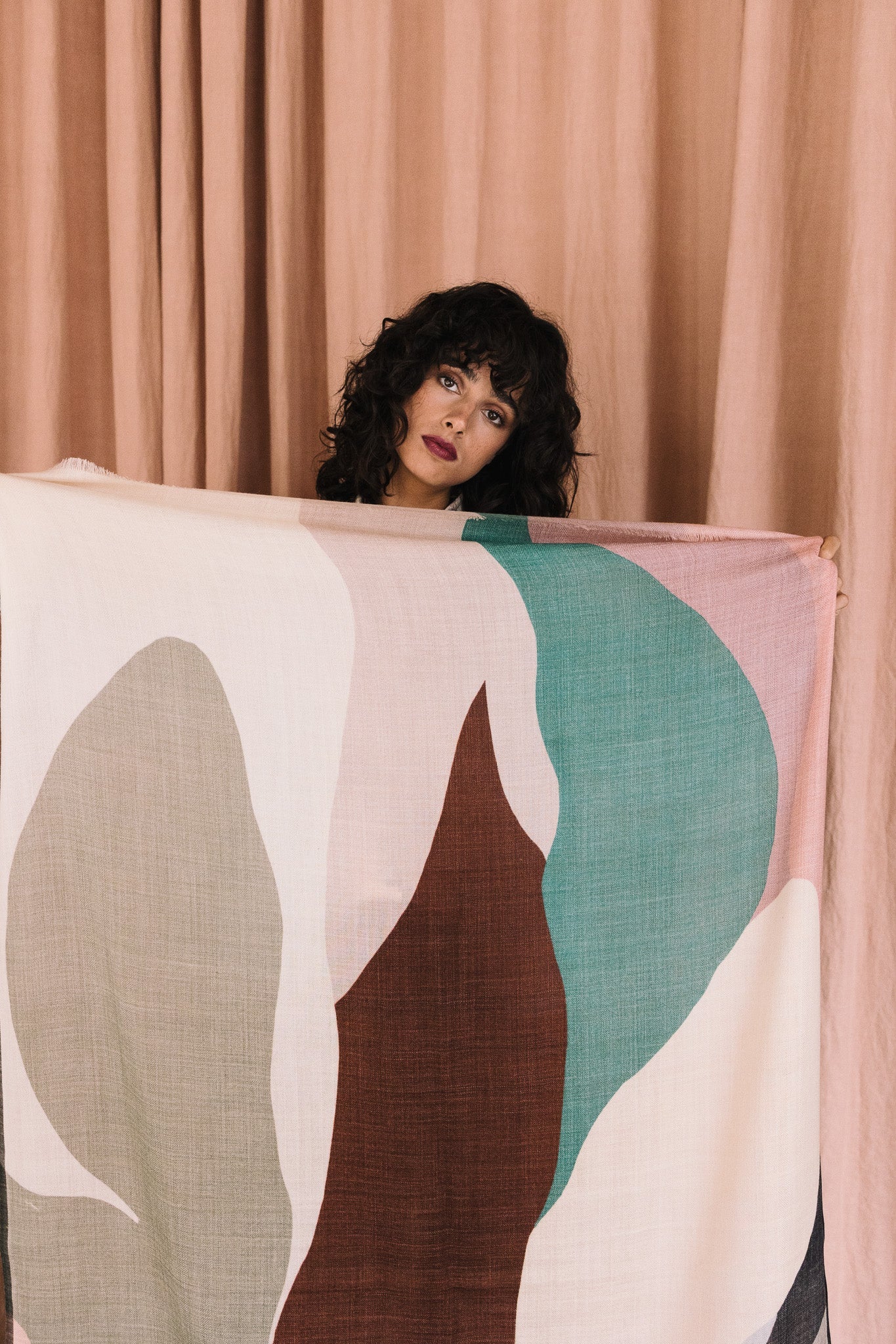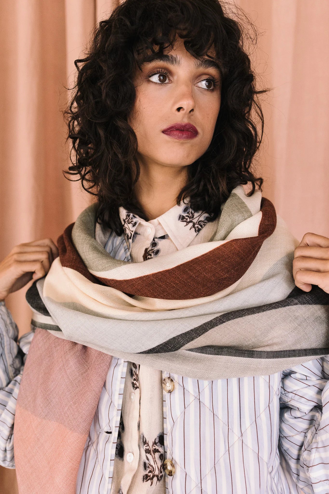 Pañuelo 100% lana, tejido cuidadosamente seleccionado y con estampado realizado a mano. Perteneciente a la Colección "Autumn-Winter 25"