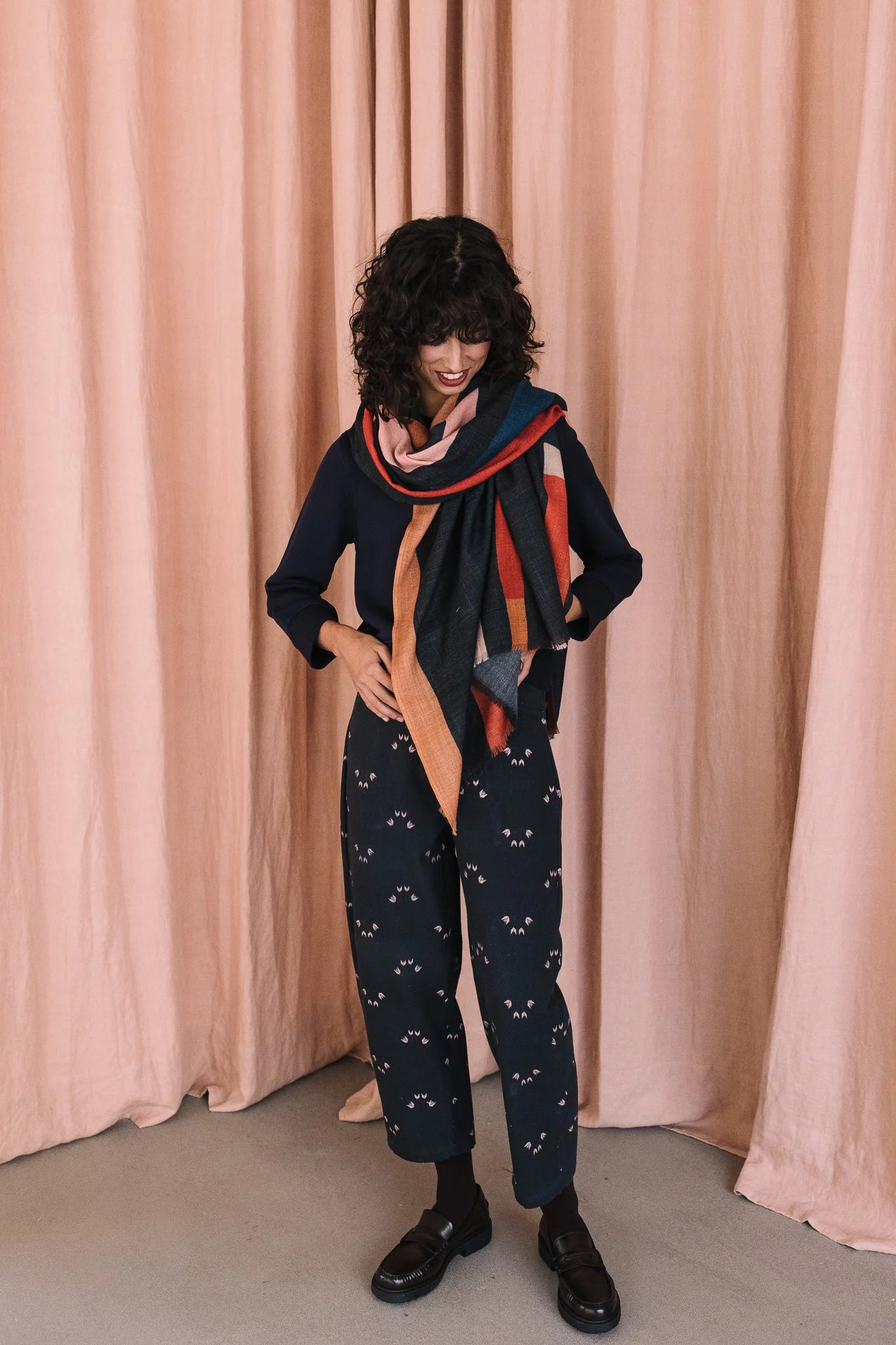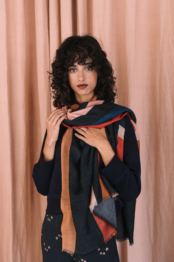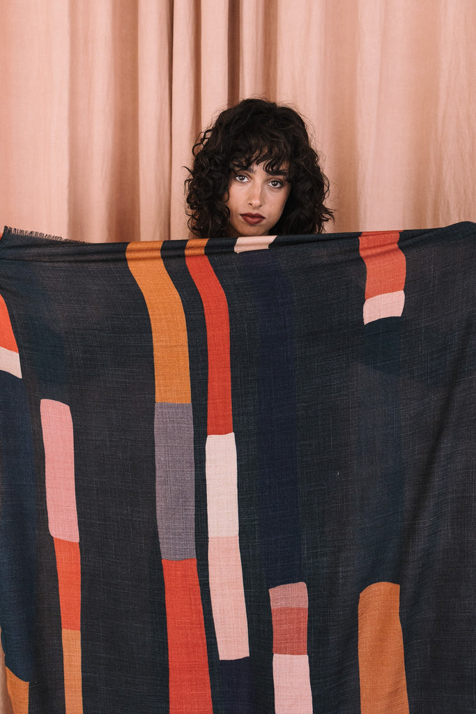 Pañuelo 100% lana cashmere, tejido cuidadosamente seleccionado y con estampado realizado a mano.