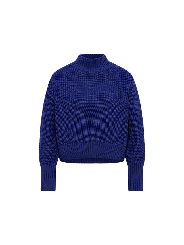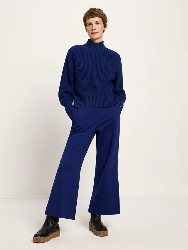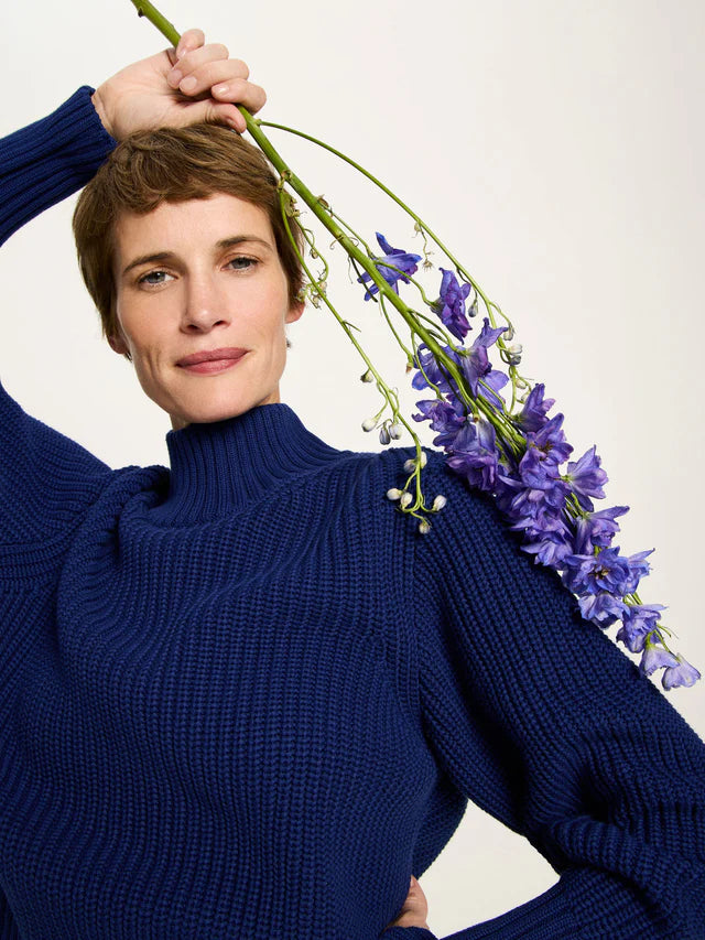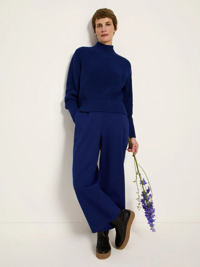 Un clásico con un toque moderno: Este suéter de punto grueso en puro algodón orgánico destaca por su textura limpia y voluminosa, y su corte holgado. El cuello redondo ligeramente alto crea una silueta atemporal, mientras que los puños y el bajo de canalé ancho completan su estilo desenfadado.