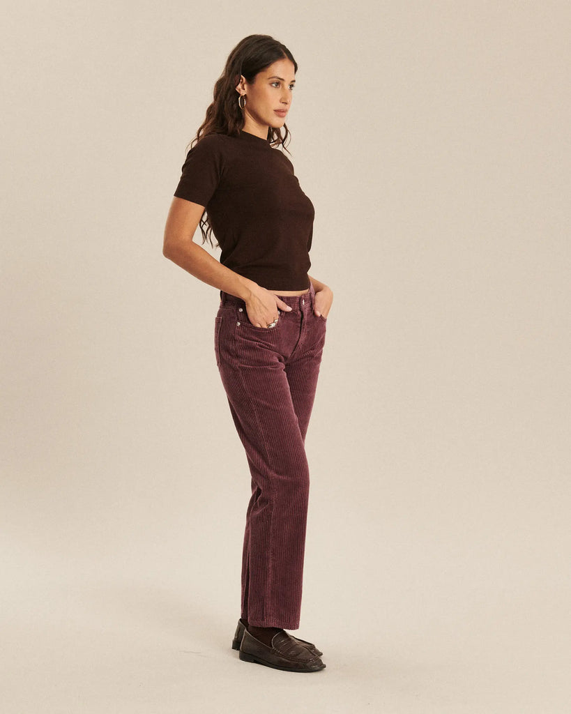 Corte recto clásico de los 90, tiro medio que se ajusta cómodamente a la cadera, largo regular que se puede llevar con los zapatos o remangar para un look casual.