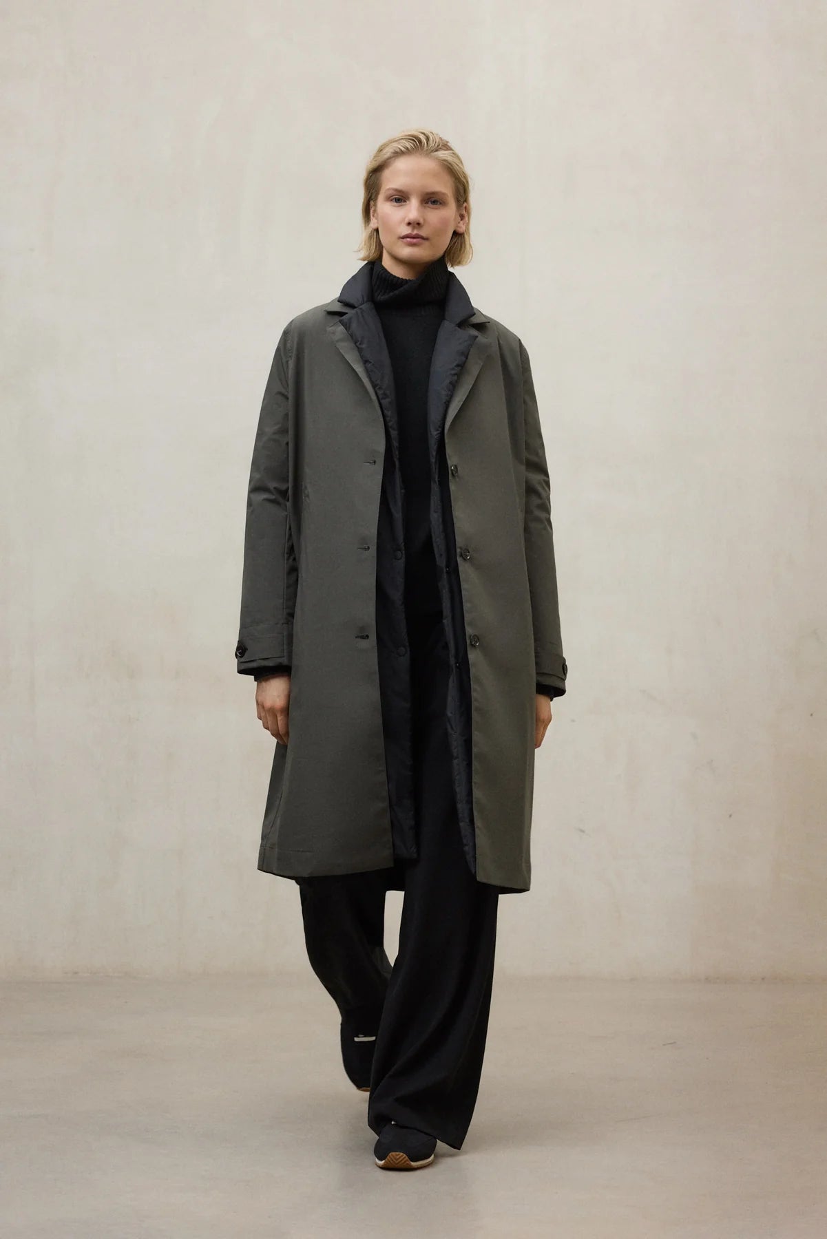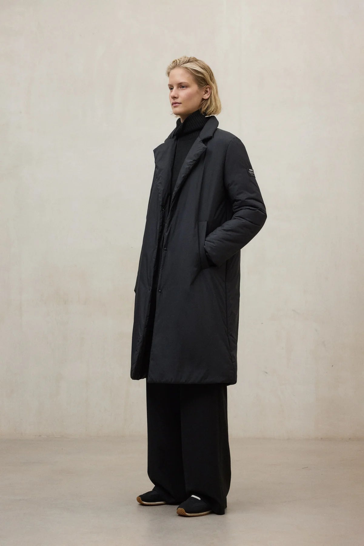 El Abrigo Albert está fabricado con un tejido principal de 55% Poliéster reciclado (Tex2Tex) y 45% Poliéster reciclado (Hilo del mar). Tiene un forro de 100% Poliéster reciclado y relleno de 100% Poliéster reciclado. Nuestro hilo del mar de poliéster reciclado se produce con las botellas y otros residuos recogidos del océano, gracias a la Fundación Ecoalf, la cual tiene la misión de limpiar los océanos de basura marina. El poliéster reciclado puede provenir de botellas de PET post-consumo o de residuos textiles (sobrantes de producción o prendas usadas). Conseguimos cerrar el ciclo de la Economía circular y evitar que estos residuos acaben en vertederos o incineradoras o el downcycling, revalorizando los residuos textiles.