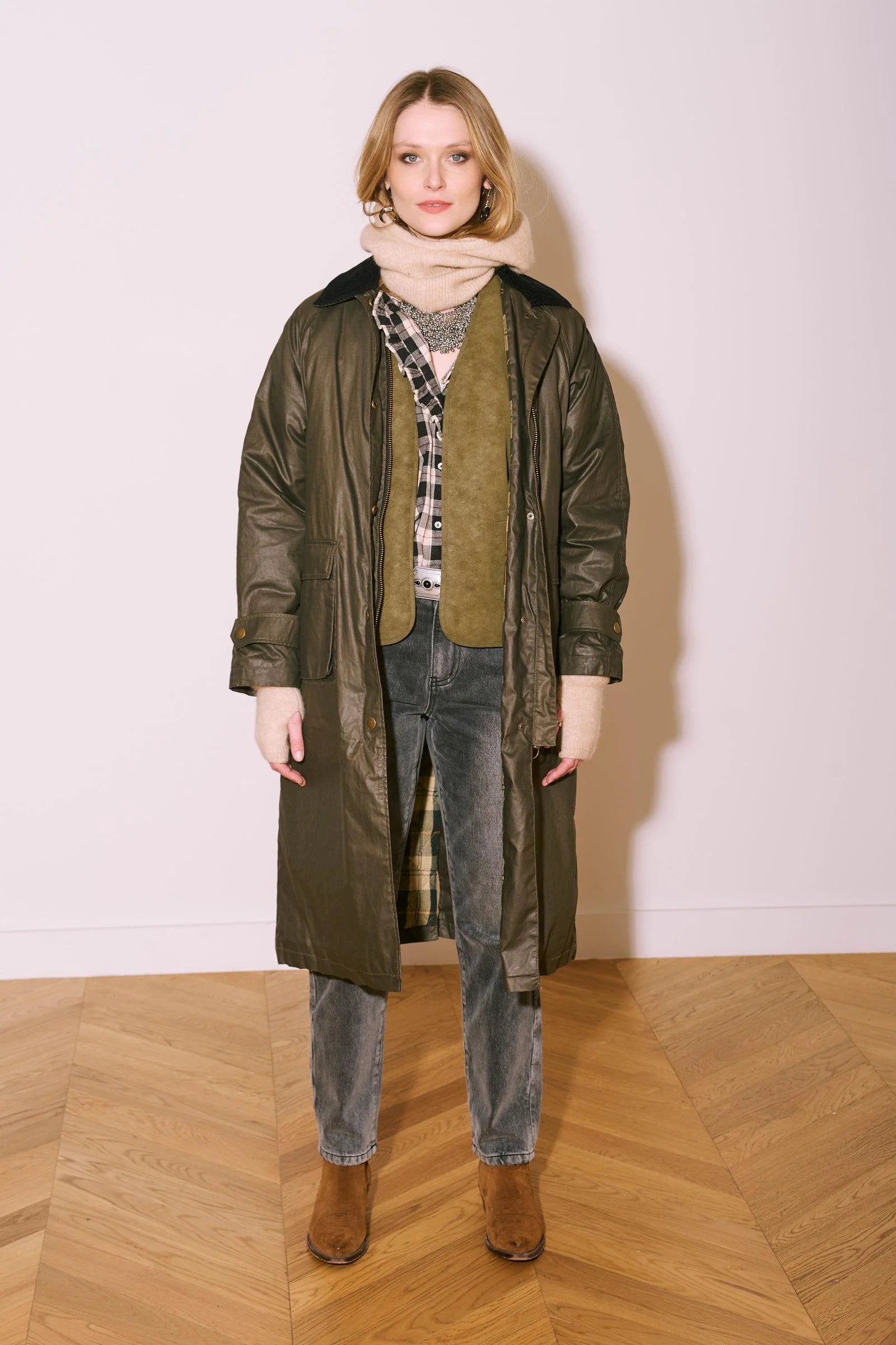 Esta parka en color caqui es una prenda de abrigo que combina elegancia y practicidad. Su corte holgado garantiza una comodidad óptima, permitiéndote llevar capas debajo sin sacrificar tu estilo.