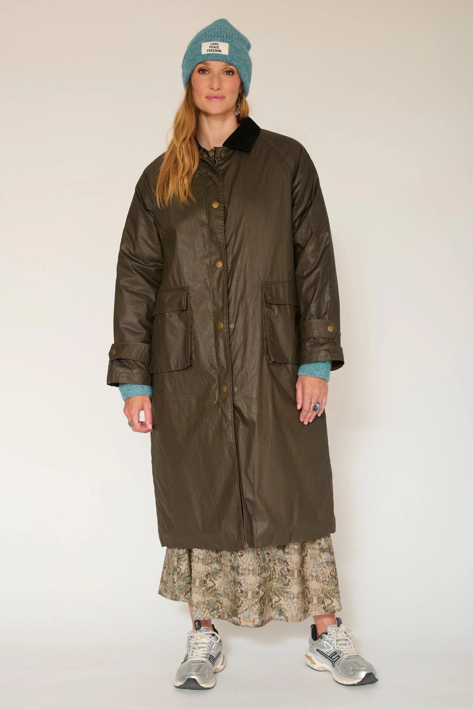 Este abrigo es ideal para un look casual y combina a la perfección con un gorro azul y zapatillas. Su versatilidad te permite integrarlo fácilmente en tus looks de diario, ya sea para salir por la ciudad o para dar un paseo al aire libre.