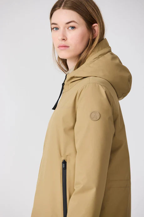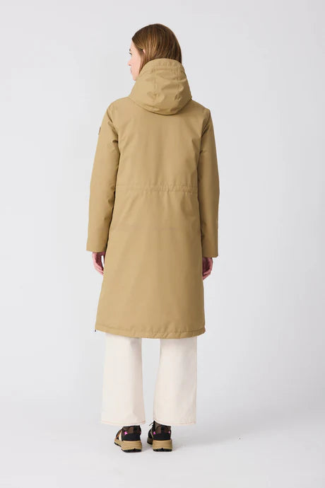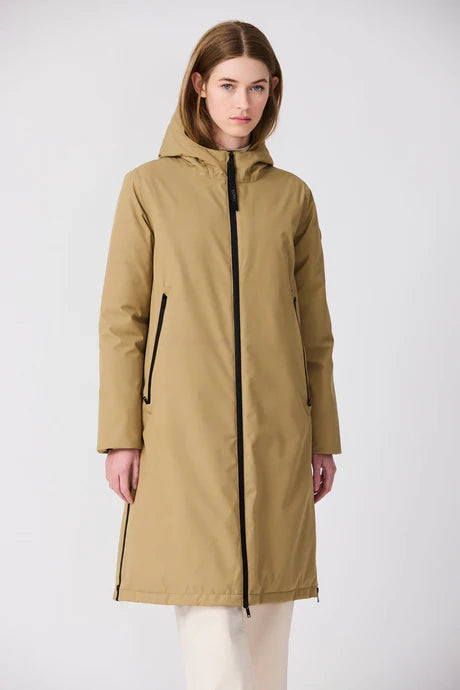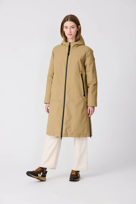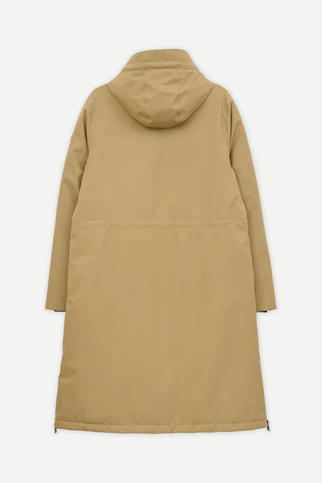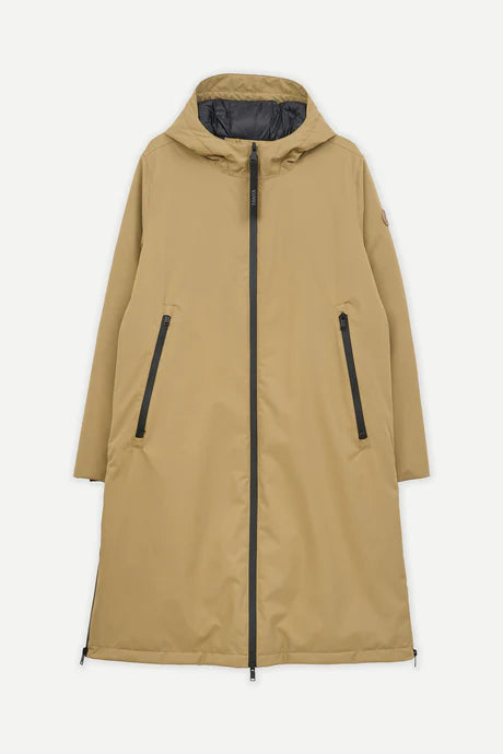 Confeccionado en tejido de sarga de poliéster y acolchado con una capa aislante transpirable y sin plumas, el abrigo Cher tiene una silueta larga en forma de A y todas las costuras están selladas para ofrecer una protección superior. Con bolsillos con cremalleras largas impermeables de doble cursor, se cierra mediante una cremallera impermeable y está acabada con correas interiores tipo mochila para llevar la prenda con las manos libres. Garantiza un ajuste personalizado con una cintura ajustable con cordón en la espalda.