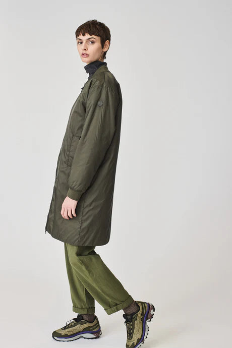 Confeccionada en nylon 100 % repelente al agua, ofrece cobertura sin perder el estilo limpio y atemporal. Ligeramente acolchada para proporcionar el abrigo justo, presenta detalles clásicos de bomber como puños y cuello de canalé, cremallera metálica frontal de doble cursor y bolsillos ribeteados.