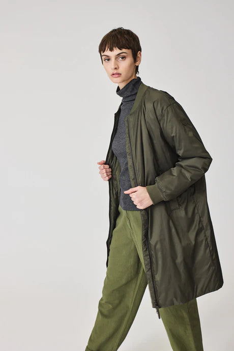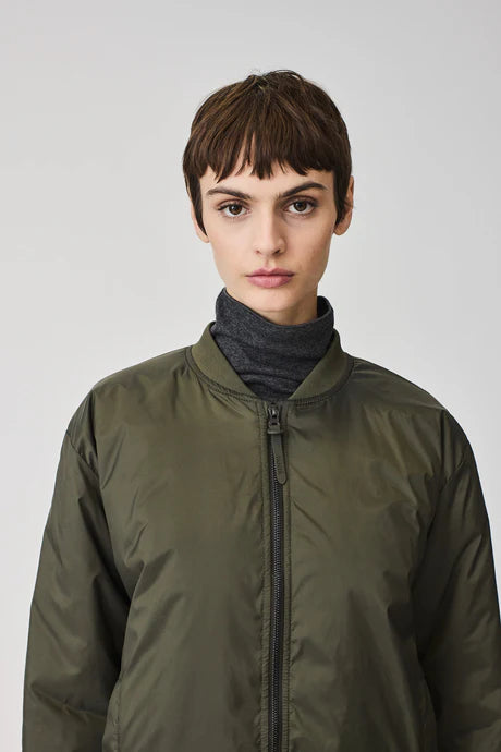Estilo chaqueta bomber con puños y cuello de canalé.