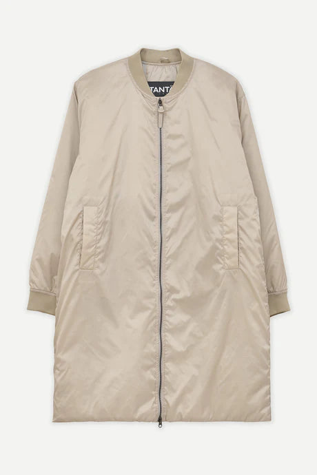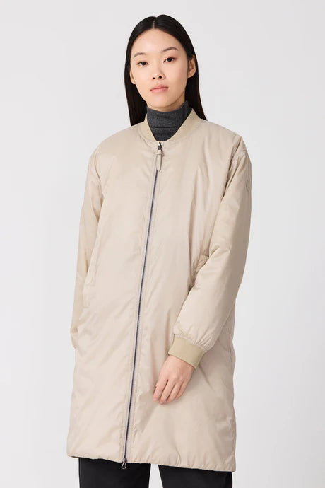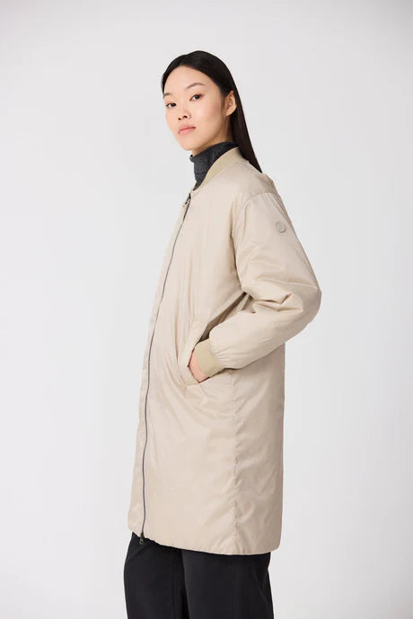 Confeccionada en nylon 100 % repelente al agua, ofrece cobertura sin perder el estilo limpio y atemporal. Ligeramente acolchada para proporcionar el abrigo justo, presenta detalles clásicos de bomber como puños y cuello de canalé, cremallera metálica frontal de doble cursor y bolsillos ribeteados.