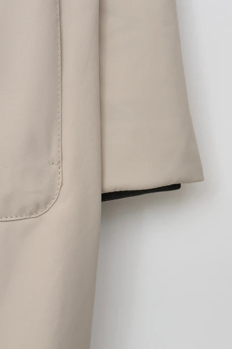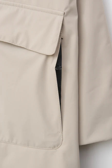 Bolsillos plastrón con solapa y apertura lateral con cremallera impermeable. Solapas con cierres magnéticos.