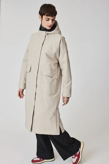 Confeccionado en tejido Twill impermeable y con costuras totalmente selladas, el abrigo acolchado Torm presenta un corte ligeramente oversize que aporta un aire moderno y sofisticado. Su aislamiento ligero, transpirable y sin plumas lo convierte en la prenda ideal para los primeros días fríos de la temporada. Las mangas raglán y los bolsillos plastrón con solapa combinan funcionalidad y diseño depurado. Ligero y cómodo, es el aliado ideal para mantenerte abrigado y seco durante los primeros días de la temporada de otoño/invierno.