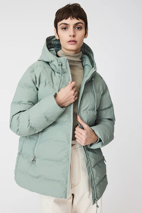 Mantente abrigada y con estilo en cualquier condición meteorológica con este plumífero 100% impermeable. Perfecto para los meses más fríos, este modelo con corte en A está confeccionado en PU mate 100% impermeable, acolchado con una capa aislante sin plumas y diseñado con cámaras sin costuras. Tiene todas las costuras selladas, grandes cremalleras impermeables en la parte delantera y los bolsillos y puños cortavientos interiores, lo que garantiza la máxima calidez.