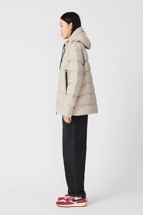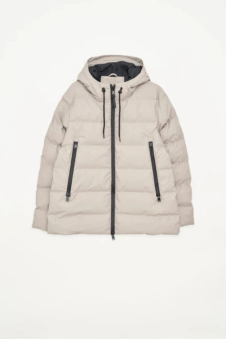Mantente abrigada y con estilo en cualquier condición meteorológica con este plumífero 100% impermeable. Perfecto para los meses más fríos, este modelo con corte en A está confeccionado en PU mate 100% impermeable, acolchado con una capa aislante sin plumas y diseñado con cámaras sin costuras. Tiene todas las costuras selladas, grandes cremalleras impermeables en la parte delantera y los bolsillos y puños cortavientos interiores, lo que garantiza la máxima calidez.