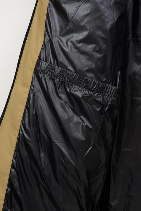 Cuenta con bolsillos con cremallera y cremalleras impermeables en los laterales para mayor movilidad, además de un canesú frontal en tejido liso que aporta un acabado limpio y pulido. Una cremallera frontal impermeable de doble cursor garantiza una protección total contra los elementos.