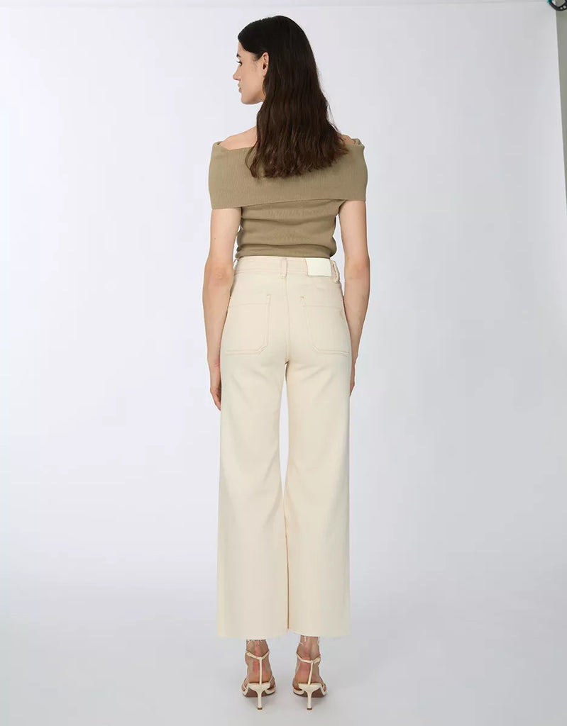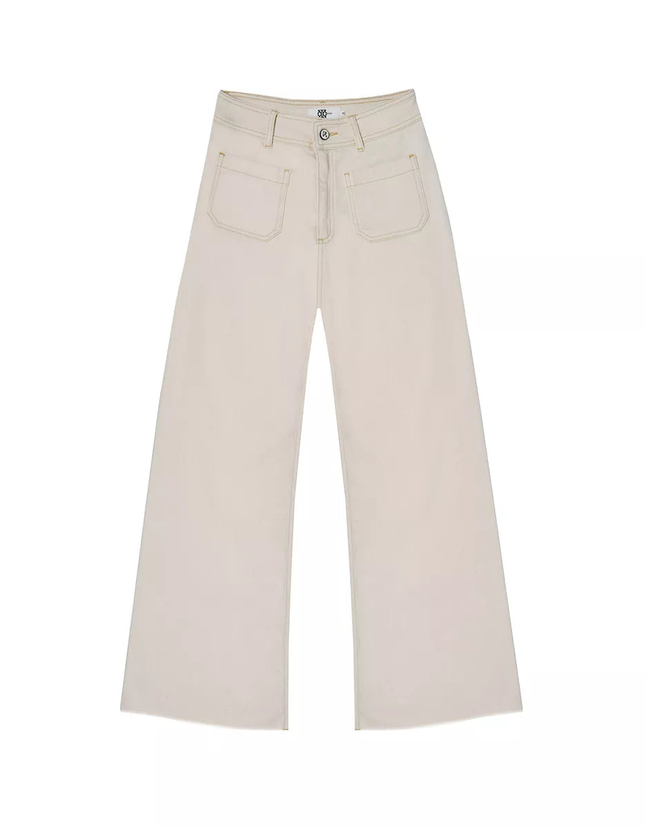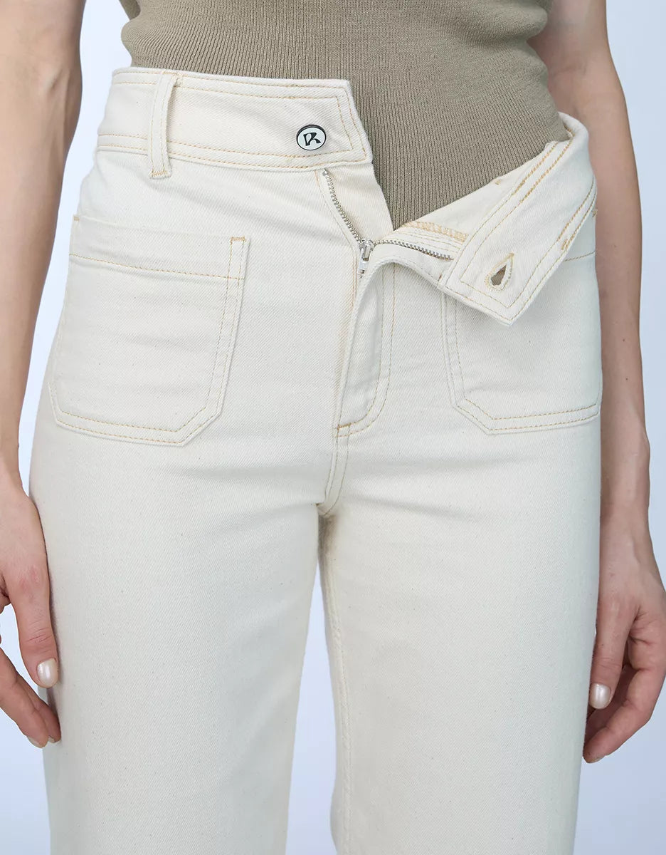 • Bragueta con cremallera de acabado plateado y botón de cristal R