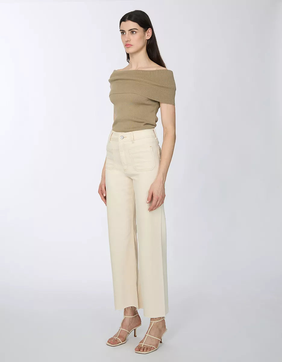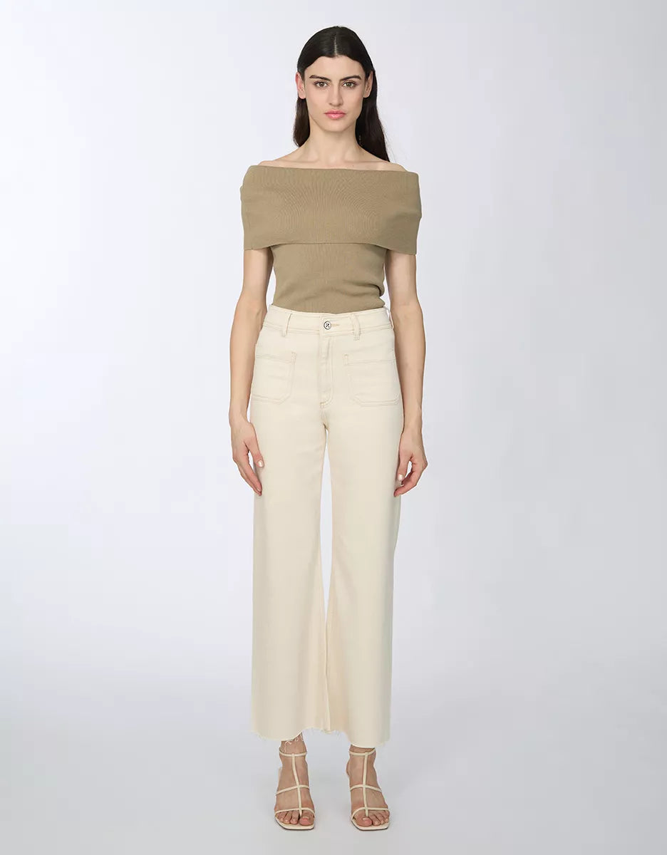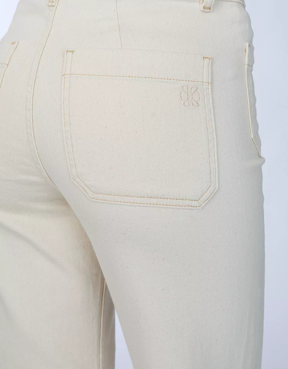 • Bragueta con cremallera de acabado plateado y botón de cristal R