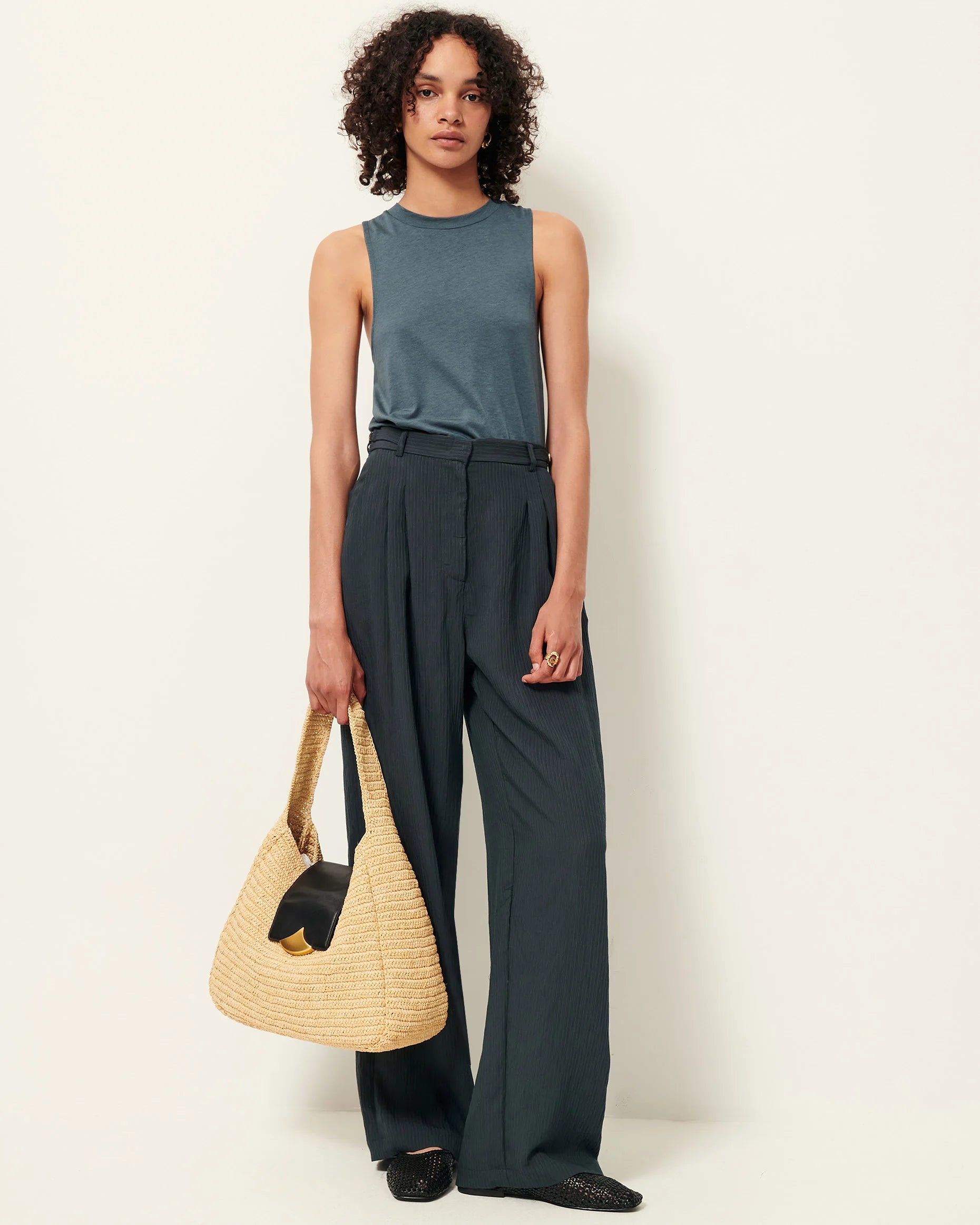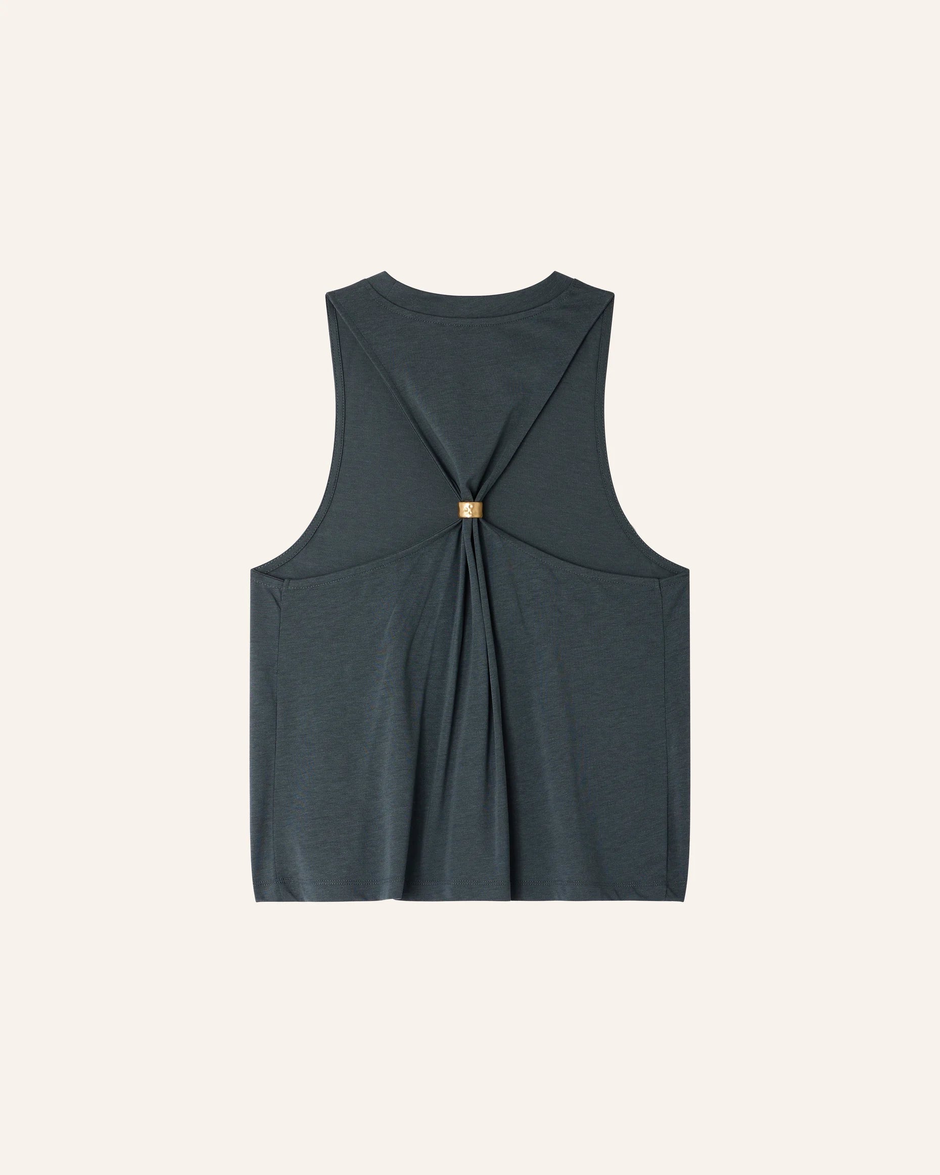Camiseta con anilla tipo joya repujada en la espalda, en punto fluido, confeccionada en Portugal.