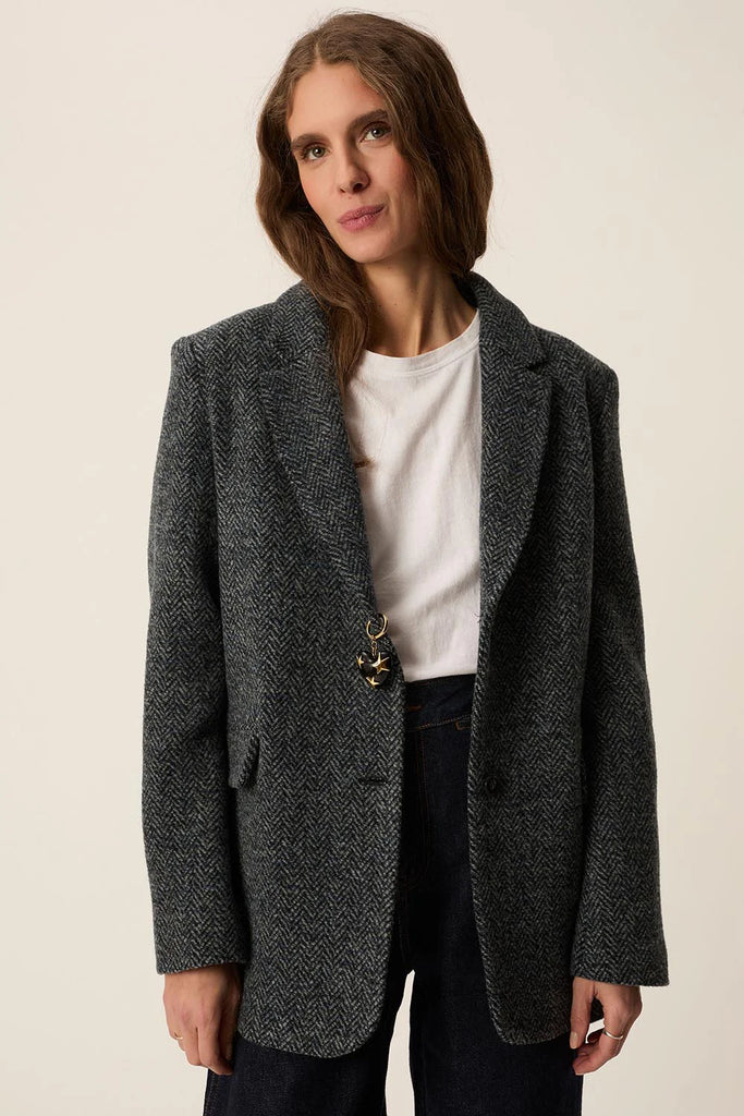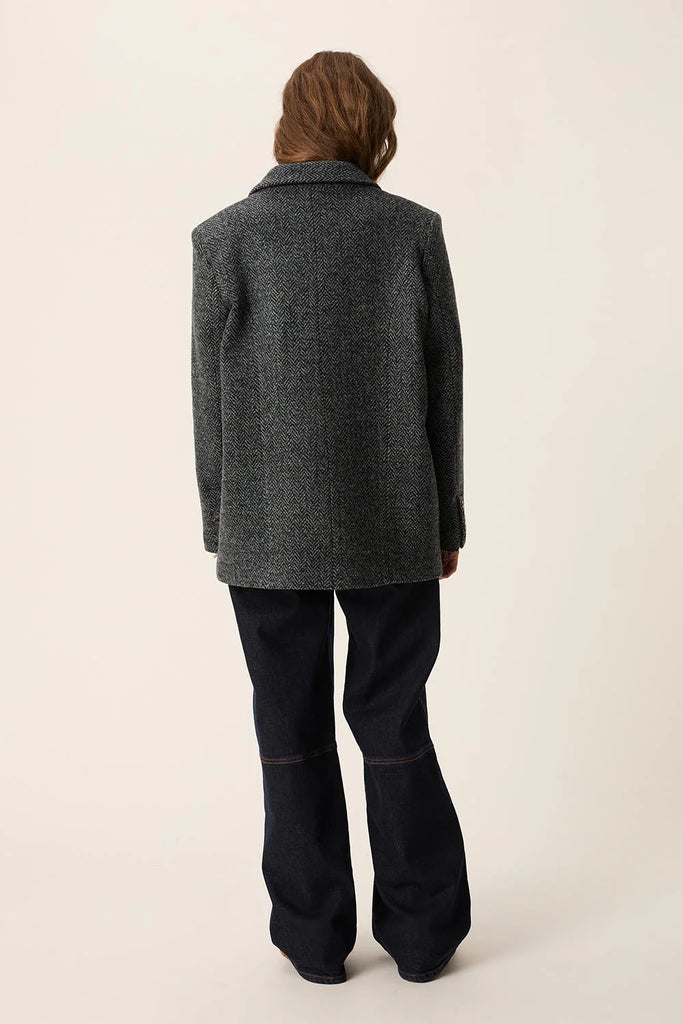 Atemporal y ultraversátil, la chaqueta de sastre Evada es una prenda elegante y práctica para entretiempo. Con hombros estructurados y un corte recto inspirado en la moda masculina, esta cálida prenda de lana, totalmente forrada, se puede usar año tras año.